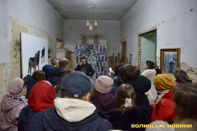 «Митці розділилися на кілька груп. Наприклад, хтось сказав, що нізащо не буде виставлятися тут, а хтось навпаки загорівся ідеєю створити якусь роботу саме для цієї локації», – пригадала вона.Олександра Пігуляк нагадала, що в 1930 році у будівлі на сучасній вулиці Винниченка, 8 у Луцьку розташовувався Земельний банк, а пізніше (після приходу радянської влади) приміщення використовували як Будинок офіцерів. Після закінчення Другої світової війни і аж до 90-х тут були різноманітні установи. Останню низку років будівля простоювала.