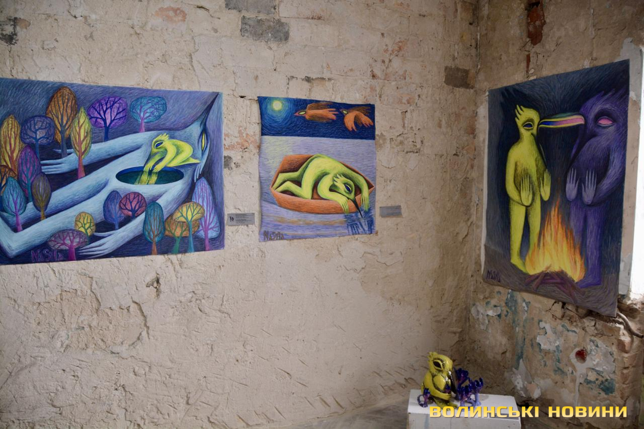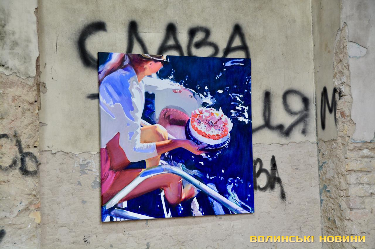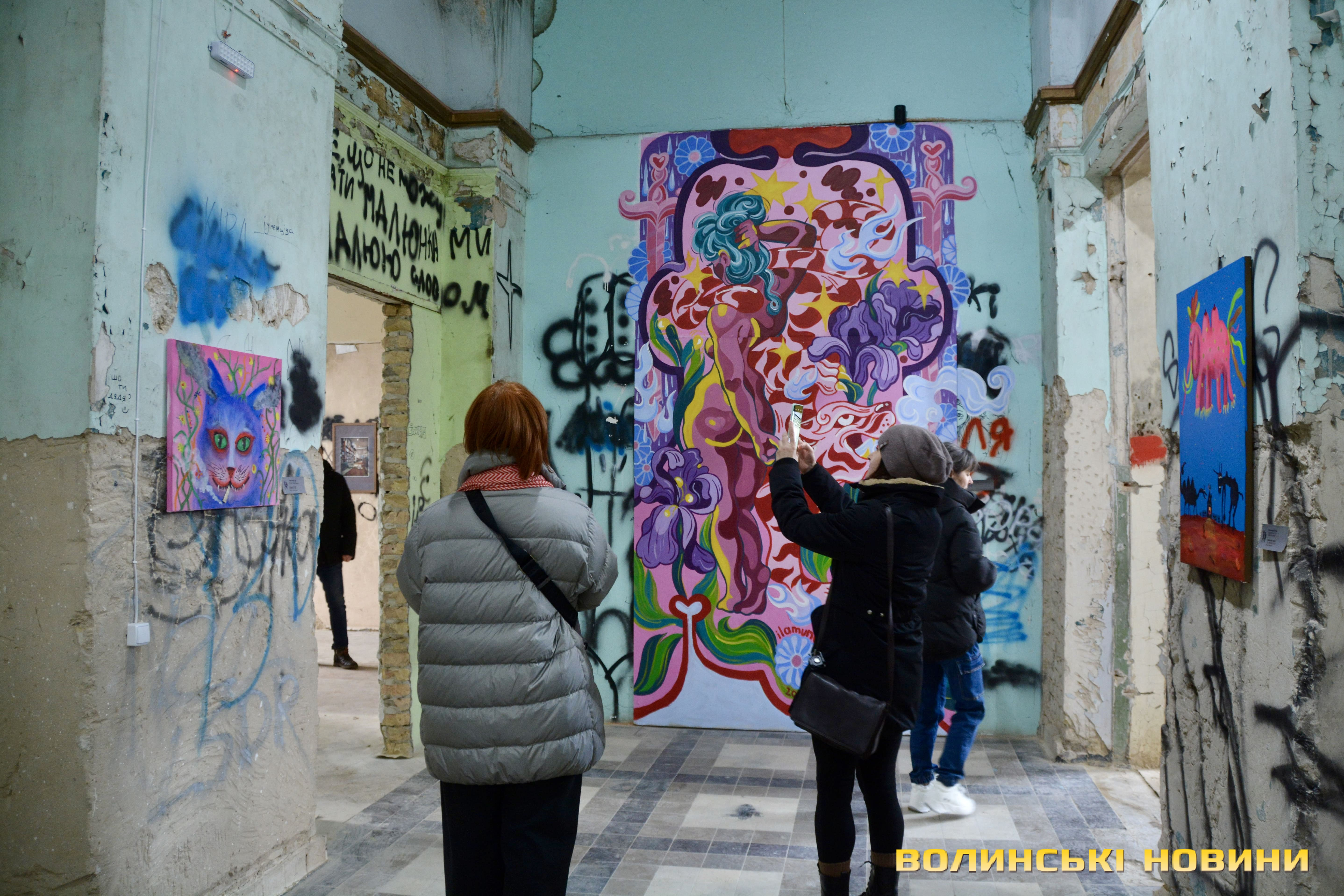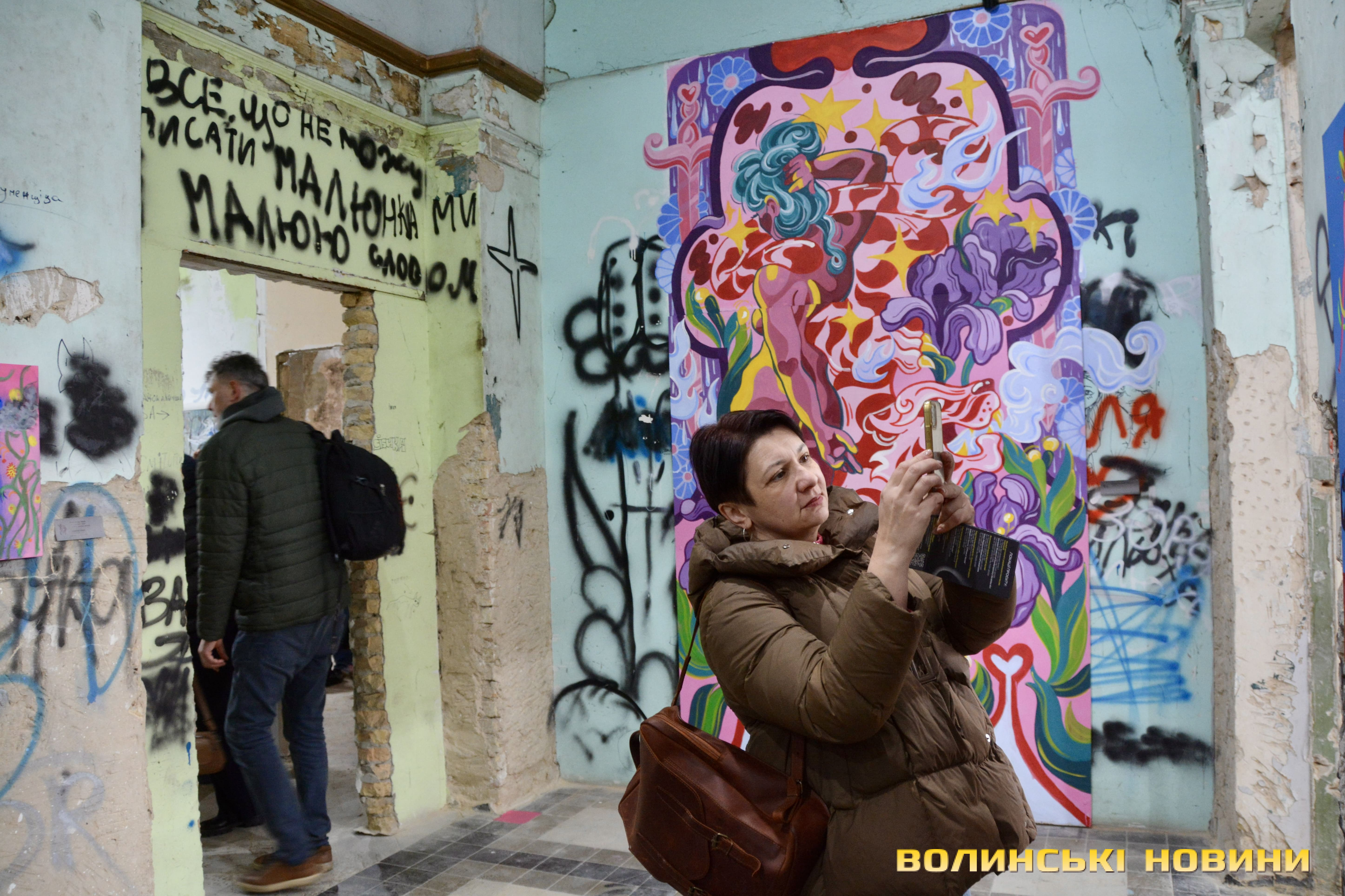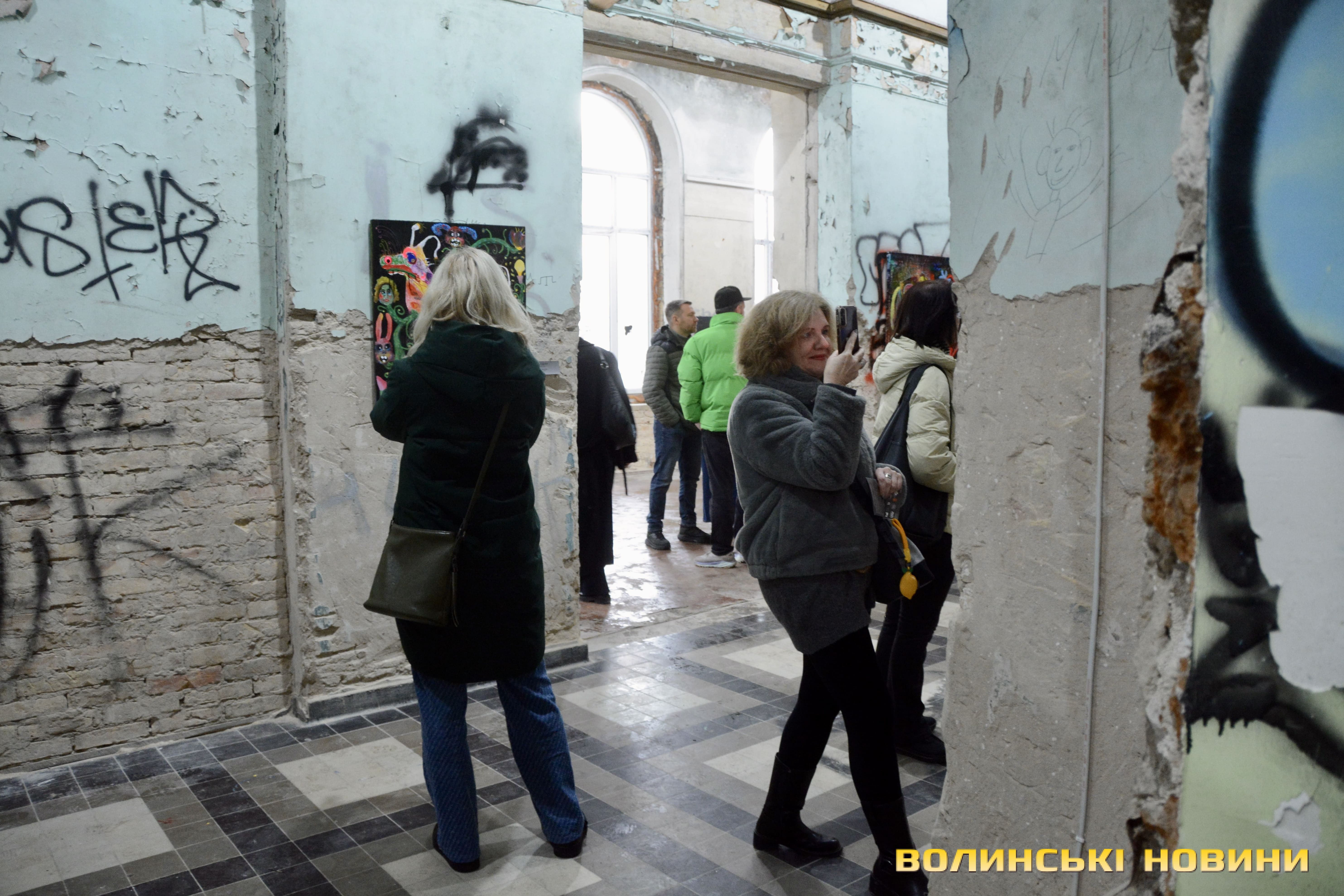«Митці розділилися на кілька груп. Наприклад, хтось сказав, що нізащо не буде виставлятися тут, а хтось навпаки загорівся ідеєю створити якусь роботу саме для цієї локації», – пригадала вона.Олександра Пігуляк нагадала, що в 1930 році у будівлі на сучасній вулиці Винниченка, 8 у Луцьку розташовувався Земельний банк, а пізніше (після приходу радянської влади) приміщення використовували як Будинок офіцерів. Після закінчення Другої світової війни і аж до 90-х тут були різноманітні установи. Останню низку років будівля простоювала.