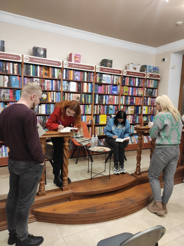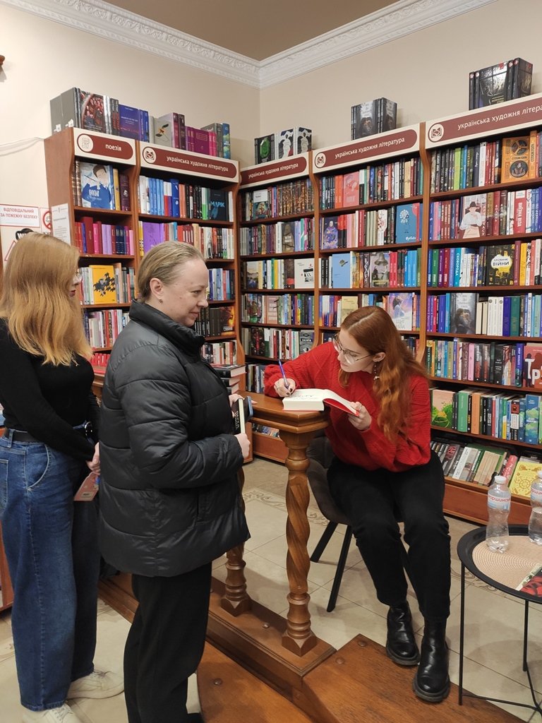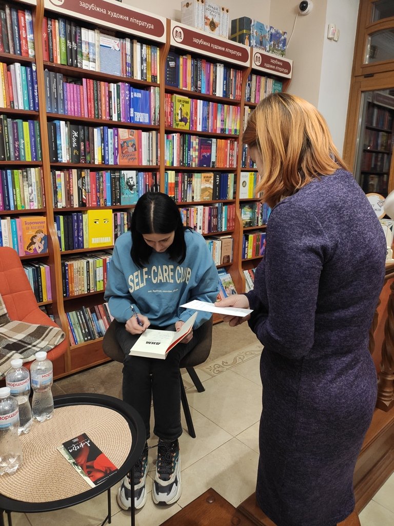 Присутні могли придбати книги, а також отримати автографи від письменниць. Тож залюбки купували книгу «Афера. І нічого зайвого» – роман-історію про інтриги та пригоди в сучасному світі бізнесу й криміналу, що змусить читача замислитися читача над моральним аспектом вибору та його наслідками.«А ось збірка новел «Дим» занурює читача в дивний світ, у якому переплітаються реальність і фантазія, створюючи оригінальний літературний простір, – розповіла пані Лілія. – Авторка ну дуже гарно показала внутрішні міркування, хвилювання головних героїв, їхні пошуки себе та місця у світі. Тут і страхи, і мрії, і переживання. Я вже читала книгу, тому раджу її усім. Бо кожна історія не лише гарно передає емоції, але й дивує несподіваною розв’язкою. Авторка розповіла, що їй часто снилися герої її історій. А далі відбувалися ще більш дивні речі – після написання новели вона в реальному житті зустрічала подібних людей».