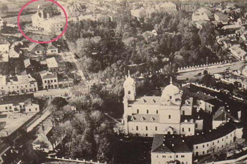 Фото 1920-х. За собором міський парк (тут зараз драмтеатр), вілла обведена кольором