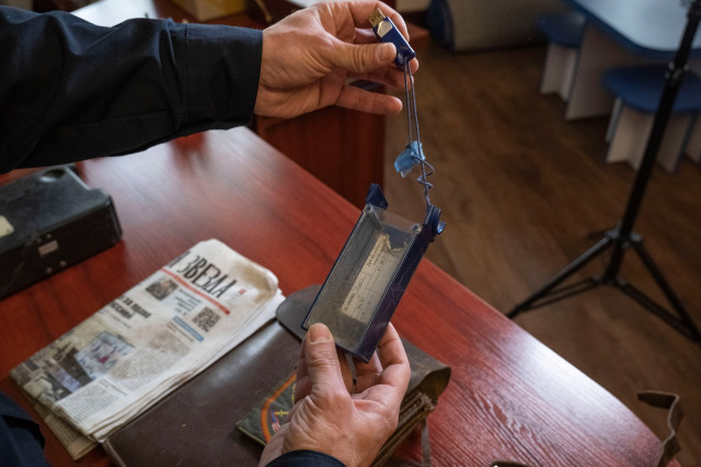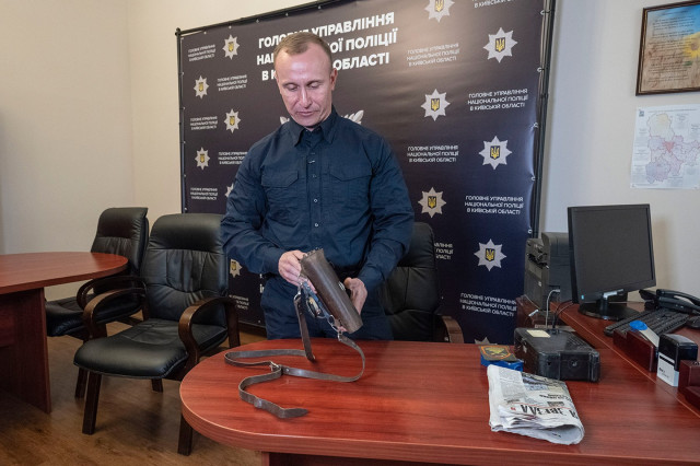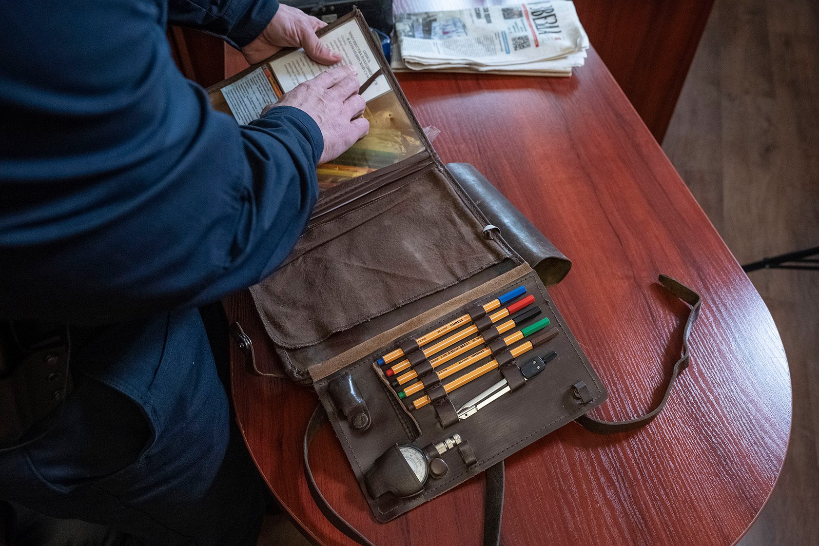 Але те, що я побачив у звільненому Чорнобилі… Вони (росіяни, – ред.) селилися в корівниках без даху!Я вам дещо зараз покажу (бере зі стола шкіряний планшет-папку, – ред.). Дивіться, який портфель (усміхається)! Легендарна річ. Я таку бачив, коли навчався в Донецькому інституті внутрішніх справ. У музеї.Нєбитов: «У СРСР такий портфель був складовою тривожної валізки офіцера. Ще додавався комплект нижньої білизни, трохи їжи, документи»