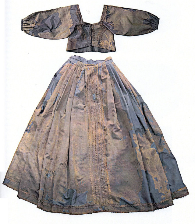 Він розповів, що перед смертю Федорка кликала батька до себе, аби попрощатися. Чоловік запитував, од чого вона хворою зробилася і чи їй хтось таке заподіяв. Дитина свого сорому батьку прямо не визнавала. Але сказала: «Нехай Бог мого батька не благословить і гріхів йому не відпустить, якщо тому Стефанові мій ґвалт не покараним залишить».Сукня alamoda, 1640 рік. Пошита за тогочасним модним французьким зразком. З крипти монастиря бернардинів у Дубні