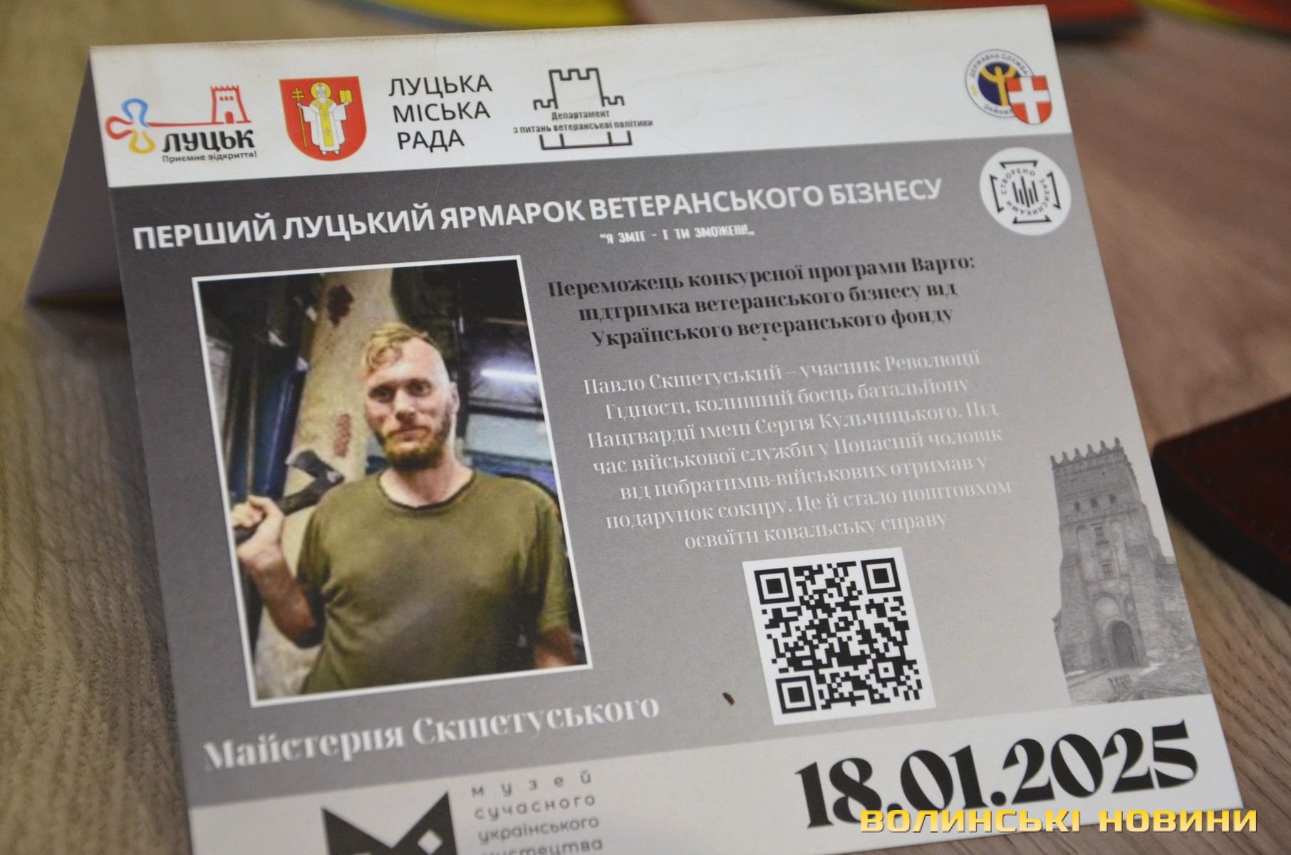 За сприяння Луцької міської ради ветерани й учасники бойових дій з усієї Волині представили різноманіття виробів. Хтось знайшов себе в пошитті вбрання, хтось виготовляє сокири або речі для священників. Ці люди на власному прикладі показали, як повернутися до цивільного життя та водночас підтримувати українську економіку.