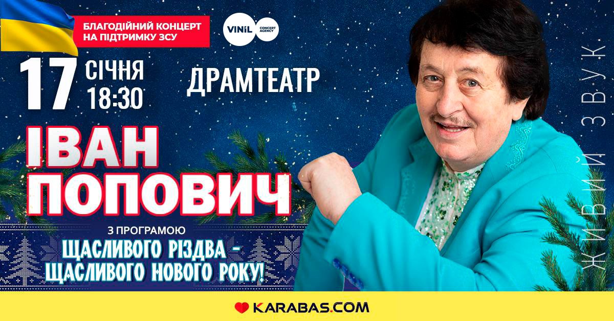 До Різдва і Нового року золотий голос української естради Іван Попович готує лучанам справжній сюрприз та запрошує провести свята разом.