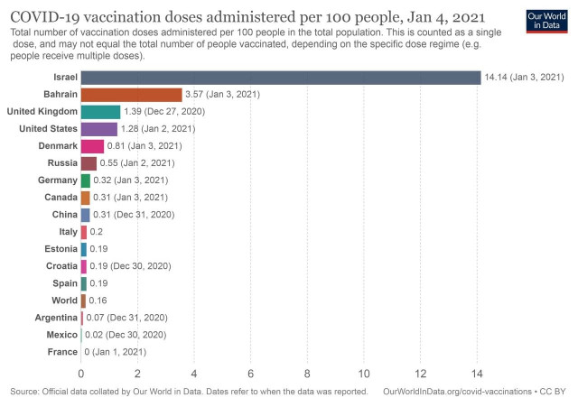 До 3 січня там отримали дозу вакцини кожні 14 зі ста людей.