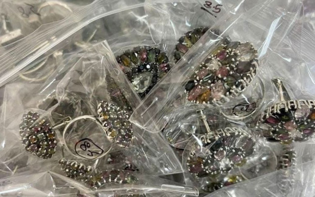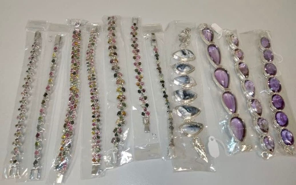 Однак митники за допомогою технічних засобів виявили, що в двох дорожніх валізах та у ручній поклажі громадянина заховані ювелірні вироби зі срібла 925 проби з вставками з каміння, зокрема:
