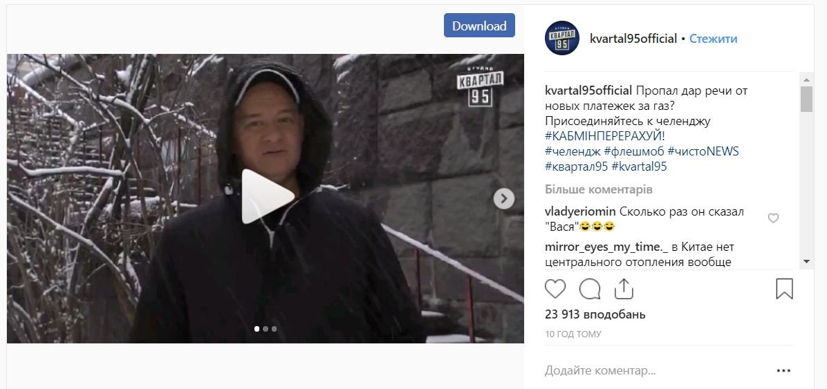 Ролик опублікований на сторінці Кварталу в Instagram, в якому актор різко і у властивій йому манері висловився про тарифи на газ.