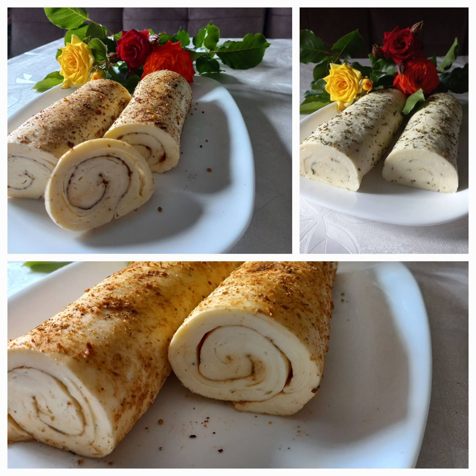 Наталія завжди хотіла навчитися робити рулети сулугуні, та хай де шукала рецепти, знайти не змогла. Тоді поклалася на власну фантазію – і в неї вийшло. Тепер в асортименті є цей пікантний різновид сиру, який має ефектний вигляд на тарілці.Особливість приготування халумі полягає в тому, що його можна обсмажувати до золотисто-коричневого кольору завдяки вищій, ніж в інших сирів, температурі плавлення. Це робить його придатним для смаження або грилю. Властивість чинити опір плавленню виникає завдяки особливості виготовлення. Цей сир можна зберігати в морозильній камері до 12 місяців. При цьому він не втрачає властивостей. За формою він напівкруглий і нагадує чебурек.