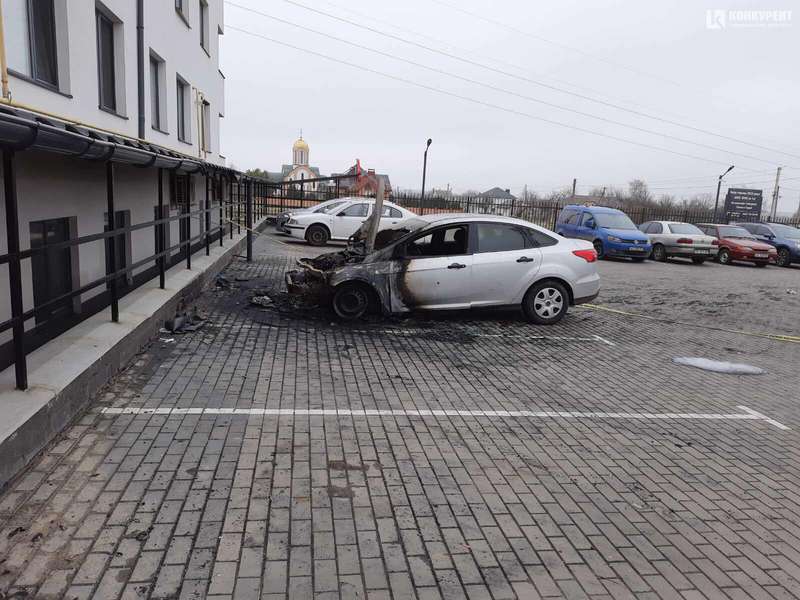 На території житлового комплексу «Сімейна фортеця» підпалили автомобіль «форд» 2018 року, пише видання Конкурент, яке і опублікувало відеозапис.