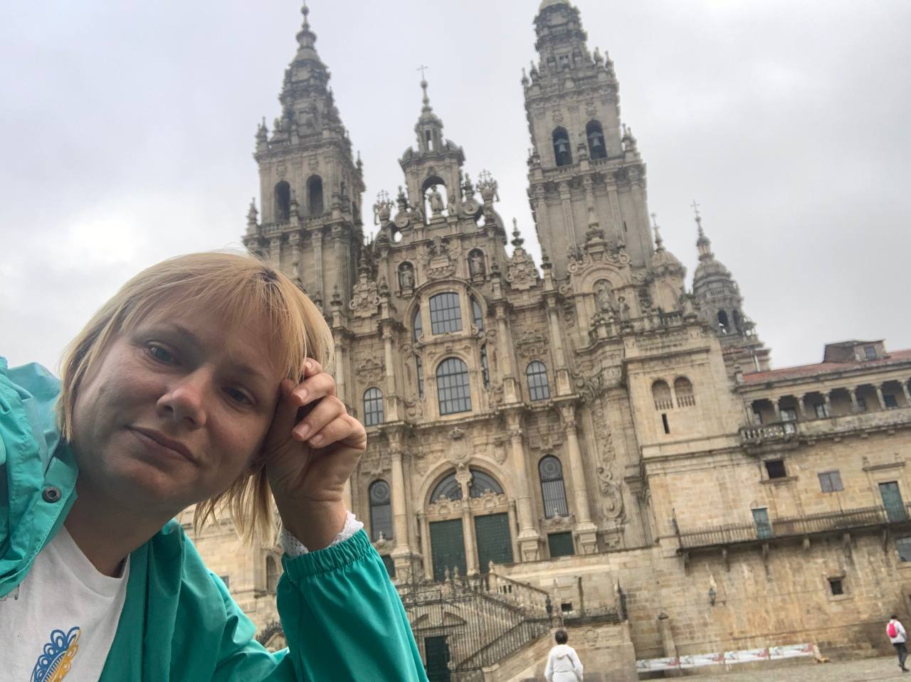 Перед тим як зайти в Сантьяго, я зустріла пенсіонера з Каліфорнії. Це його не перше каміно, він і порекомендував взяти документ про завершення подорожі. Сам він прийшов на цю площу, розвернувся й пішов далі. Каже: «Я починаю нову дорогу. Скільки в мене є часу, стільки я йтиму цю дорогу». Він навіть не чекав на службу в храмі.