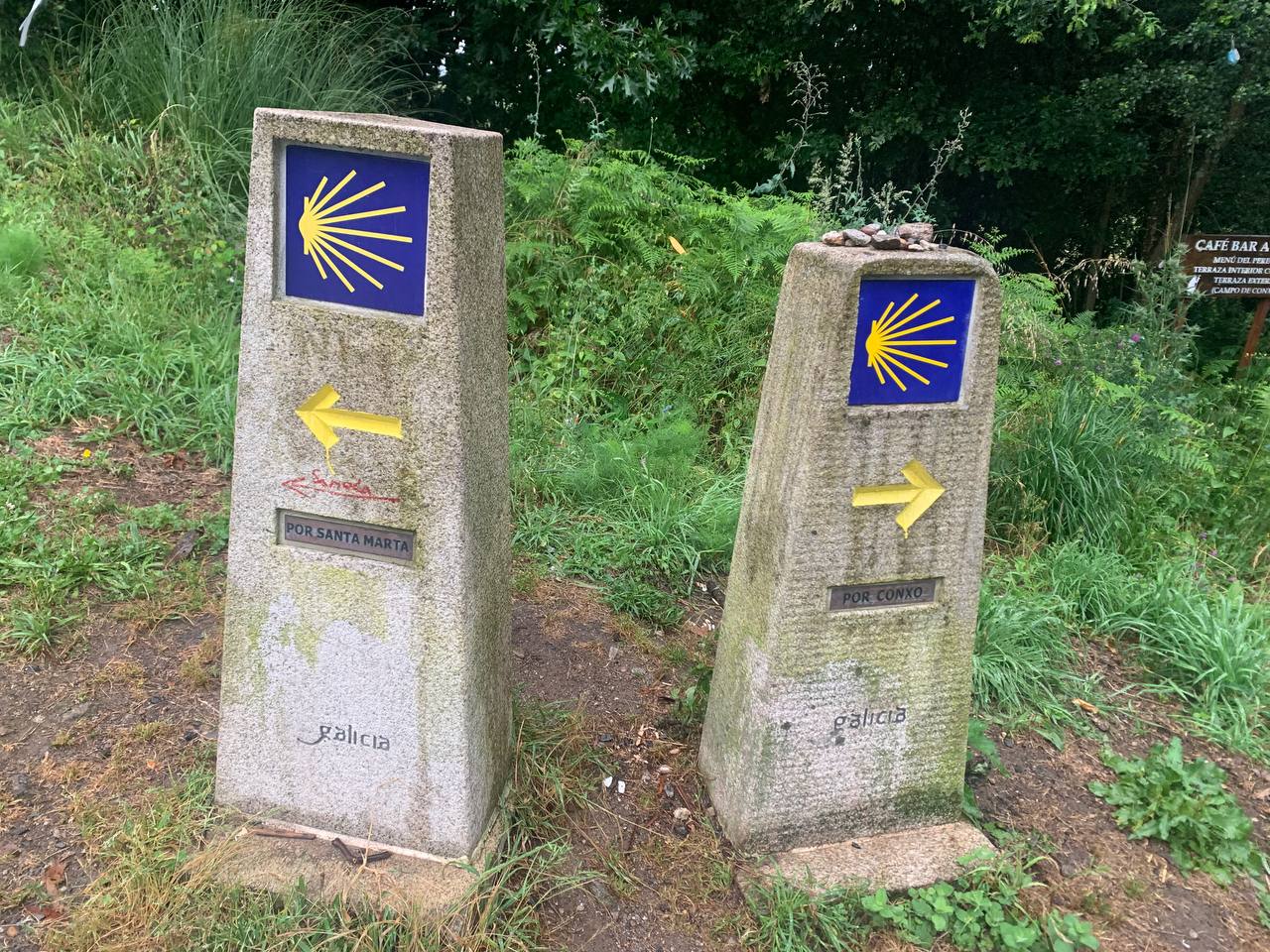 Інтрига на цій дорозі в тому, що каміно творять люди. Цей шлях не був би таким без людей. Ти з ними зустрічаєшся, спілкуєшся, але ці люди не супроводжують тебе: у кожного різний темп, різна мета. Ми пройшли години три з цими польками разом і виявилось, що нам треба розходитися. Тоді я йшла сама, в мене був час для своїх думок. А навкруги краса, яку хочеться роздивитися, сфотографувати: евкаліптовий ліс, квіти, архітектура. Цей маршрут має, мабуть, тисячі стежок, але він повністю промаркований. Скрізь є вказівники з мушлею – символом каміно, усе супроводжується стрілочками. Маршрут прокладено такими стежками, щоб показати найгарніші місця, найгарніші пам’ятки.Потім я йду сама, повертаю в лісок і розумію, що то трохи недобра ідея – йти самій таким лісом. І от тільки про це подумала – як вже виходжу на залюднене місце. Вийшла з того ліска – і я знову зустрічаю тих же польок. Ми йдемо далі й разом зупиняємося в альберге. А там – ще й невеликий басейн, де можна опустити в холодну воду ноги.І це не всі такі випадково-невипадкові зустрічі. У передостанній день я підходжу до альберге, де планувала зупинитися на ніч. То було вже завершення подорожі, і так не хотілося, щоб вона закінчувалась, тому й не надто поспішала. Це мала бути моя остання зупинка перед Сантьяго-де-Компостела. Приходжу, це вже була година п'ята, кажу, що хочу поселитися, бо пройшла багато і втомилась. А там не виявилося місць, і найближча ночівля розташована за вісім кілометрів.