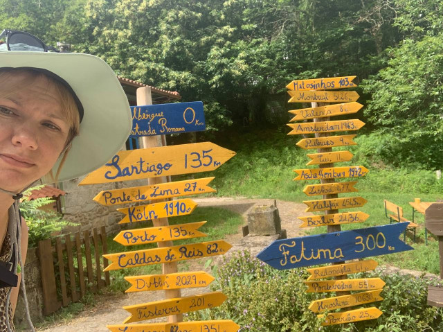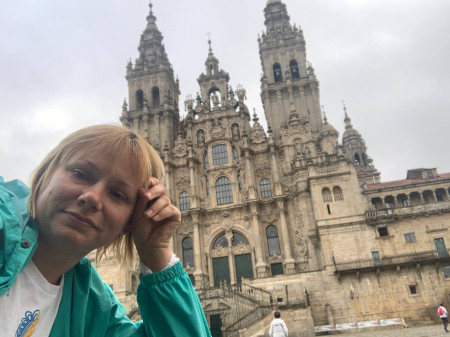 Власник хостелу це каже й дивиться на мою реакцію, що буду казати: проситися, плакати. А я кажу: «Ну ок, вчора 50 кілометрів було, а сьогодні 30, значить, ще мені треба пройти». Я ще там повечеряла, хазяїн люб’язно передзвонив у інше альберге і з’ясував, що там буде для мене місце, тож я вирушила. Йду, а мене наздоганяє хлопець, якому теж місця не знайшлося. Як виявилося, ця дорога дала ще одну зустріч, яка мені була потрібна. Наступного дня я мала повертатися до Порто, але не знала, як туди дістатися з Сантьяго-де-Компостела, і ось цей попутник, португалець, мені допоміг, він підказав, коли їдуть автобуси, поїзди. Тобто мені ця людина була дана для того, щоб я знала, як повернутися. Ось такі чудеса дороги. До слова, цей хлопець знає історію України, цікавиться подіями в нашій державі. Ми багато поговорили про це з ним.