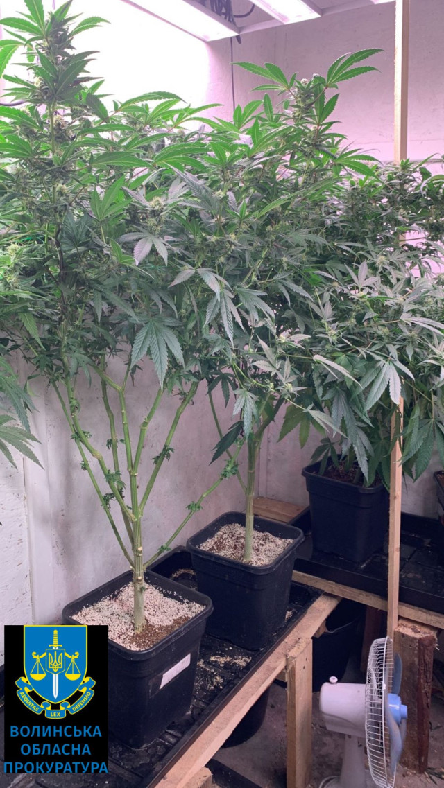 Згодом, під час обшуку оселі волинянина у Ківерцях, де було обладнане спеціальне приміщення для вирощення конопель і виготовлення наркотичних засобів, вилучено 9 кущів коноплі, розфасований у ємності канабіс та гранату.
