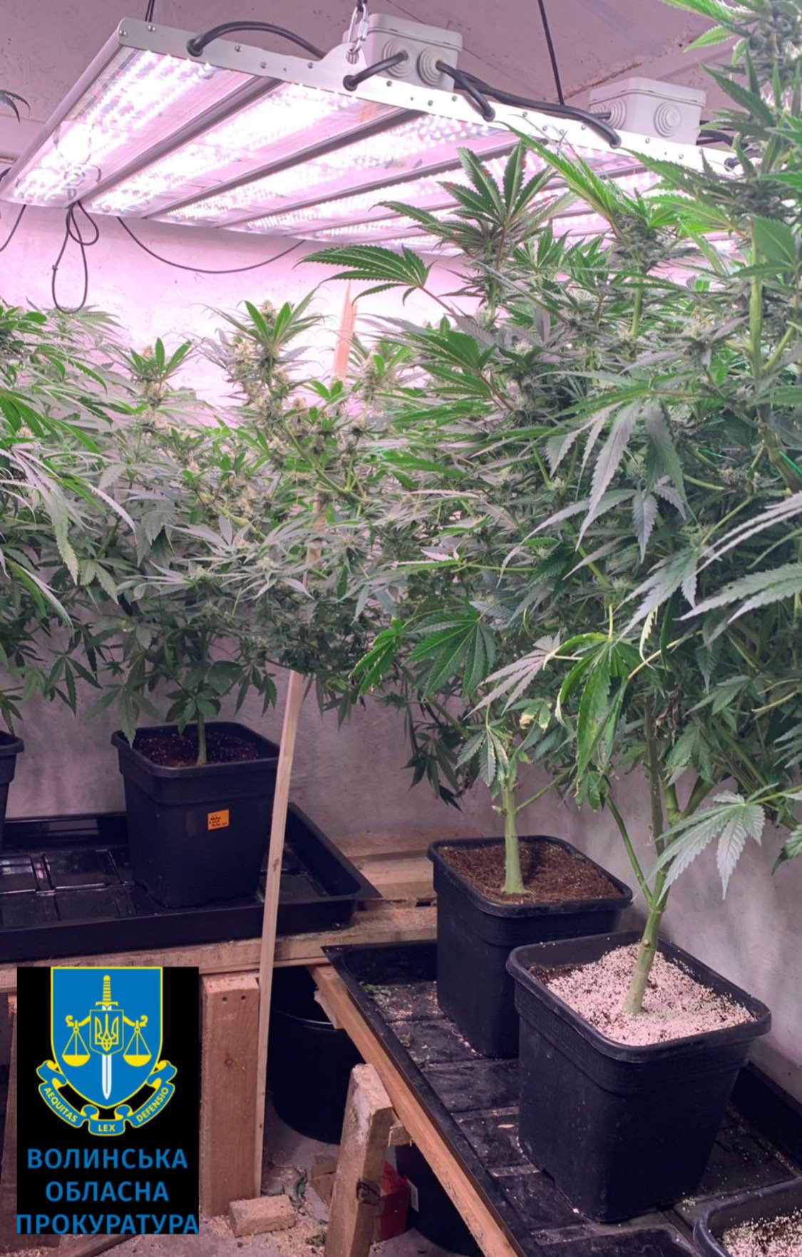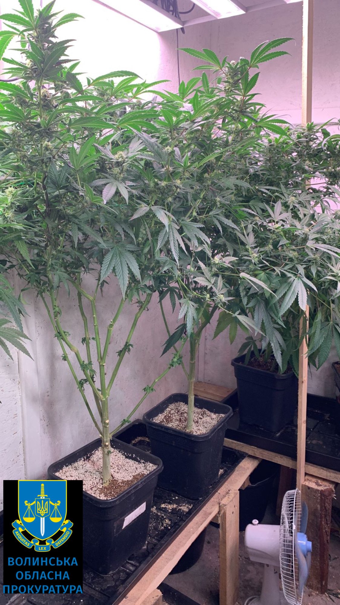Згодом, під час обшуку оселі волинянина у Ківерцях, де було обладнане спеціальне приміщення для вирощення конопель і виготовлення наркотичних засобів, вилучено 9 кущів коноплі, розфасований у ємності канабіс та гранату.