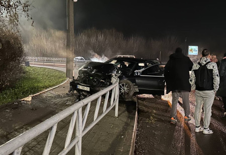 Зі слів очевидців, водій BMW не впорався з керуванням та на повороті влетів у металеву огорожу. Внаслідок зіткнення повністю розбита передня частина машини.