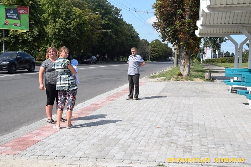 На вул. Рівненській здійснено ремонт зупинки громадського транспорту та пішохідної зони поруч.«Ця зупинка першою зустрічає гостей нашого міста, тому вирішили облаштувати її, хоча територія належить до сусідніх ОТГ, – зауважив Ігор Поліщук. – Раніше зупинка виглядала жахливо, тому вирішили змінити цю ситуацію, аби при в′їзді до Луцька територія зупинки мала охайний і доглянутий вигляд».Усі відремонтовані пішохідні зони викладено бруківкою, обладнано сенсорною плиткою для зручності людей з вадами зору, а також зручними спусками для візочків і людей з інвалідністю.Задоволені лучани і ремонтом історичної вулиці Пушкіна в центрі Луцька. Тут збережено так звану історичну плитку Трилінського, яку під час ремонту не просто переклали, а очистили кожну шашку від багаторічних нашарувань та забезпечили максимальне ущільнення при викладанні. Таким чином дорога вийшла рівною та якісною, а пішохідні зони облаштували бруківкою «мультиколор», яка гармонійно поєднується із історичною плиткою Трилінського. Також на вулиці облаштували відгороджену зону для смітників.«Сьогодні оглянули багато об’єктів поточних і капітальних ремонтів, – розповів Григорій Недопад. – Дуже важливим для міста є саме ремонт перехрестя по вул. Ківерцівській. Також нові пішохідні доріжки в багатьох районах міста забезпечать комфорт для пішоходів і поліпшать загальний вигляд вулиць. Під час ремонту вулиці Пушкіна врахували усі побажання місцевих мешканців, а саме зберегли всі зелені насадження, облаштували якісне водовідведення і спеціальні нахили, які повністю відводять дощову воду».«Ківерцівське перехрестя в минулому було найгіршим у Луцьку, мало велику ямковість і просідання. А сьогодні тут повністю прокладено водопостачання, зливову каналізаційну мережу, завершено земляні роботи і викладено нижній шар асфальту, – зауважив Ігор Поліщук. – Також уздовж відремонтованої ділянки вулиці буде облаштовано тротуар. Активно працюємо по облаштуванню пішохідних доріжок відповідно до звернень лучан. Приємно відзначити, що мешканці багатьох районів щиро радіють ремонту і дуже бережно ставляться до результату, допомагають і облаштовують свої дворові території, фарбують дитячі майданчики і доглядають за зеленими зонами».