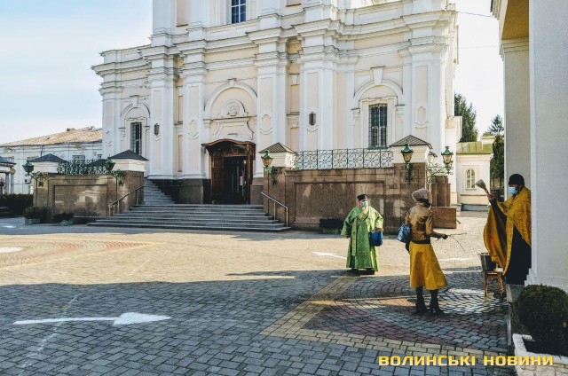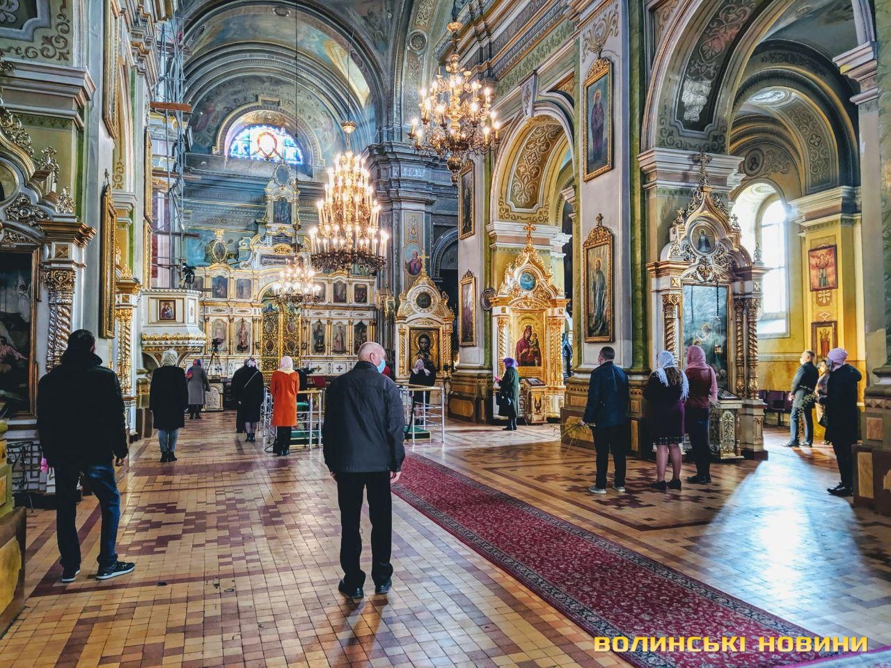 У Соборі Всіх Святих Землі Волинської, як і в більшості храмів в Луцьку, богослужіння на Вербну неділю відбулося. Вірян на території храму було досить багато, але священники у мікрофон закликали: «Браття і сестри, дотримуйтесь безпечної дистанції, всі встигнуть посвятити вербу».