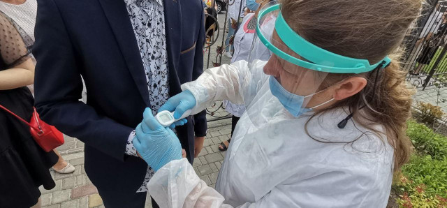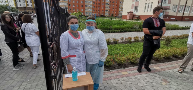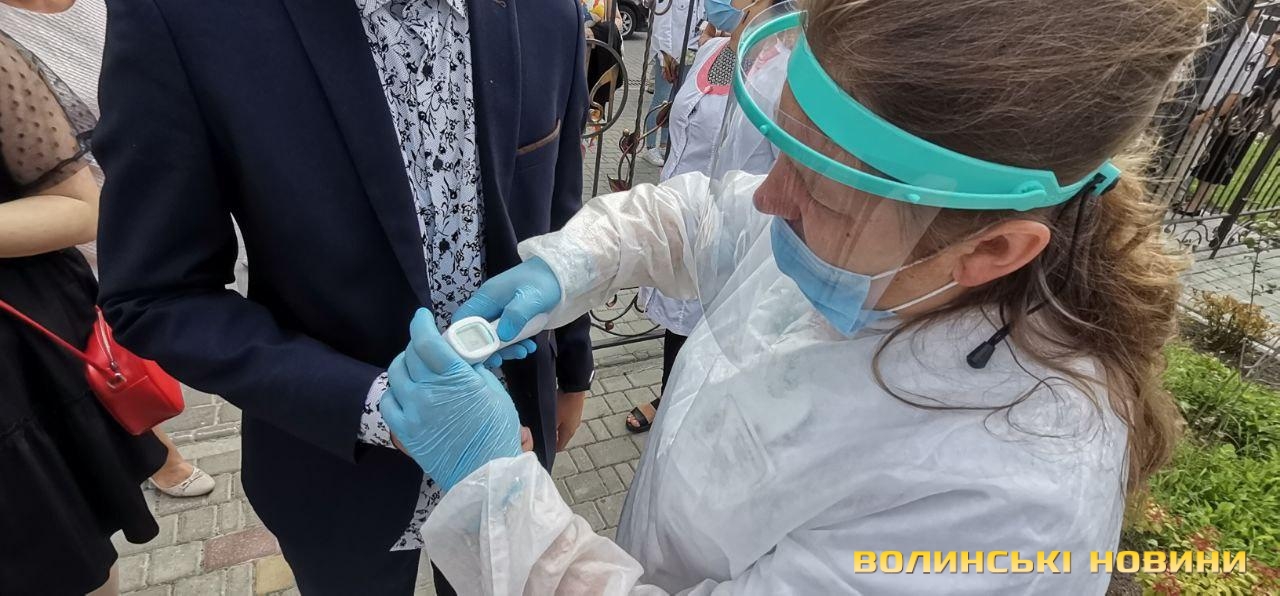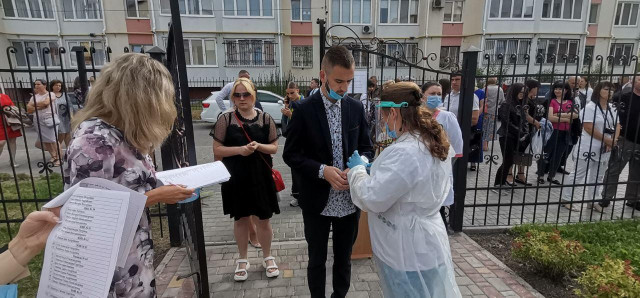 Пропускали на свято не всіх: батьків просили чекати перед ліцеєм. При вході робили температурний скринінгу.