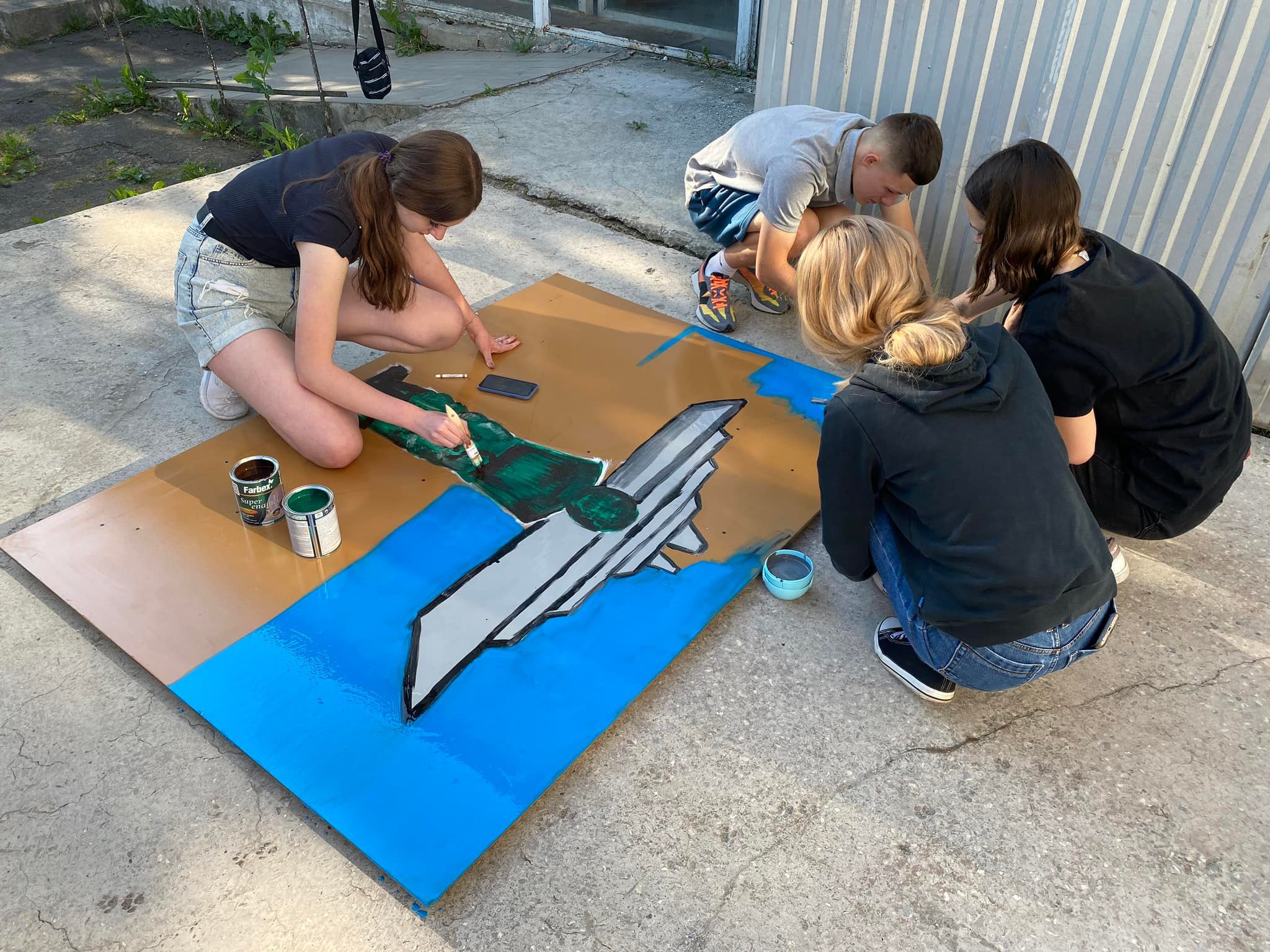Завдякі ініціативі небайдужих, картина, яка стала квадратом Малевича, була відновлена на стенді, випускниками.