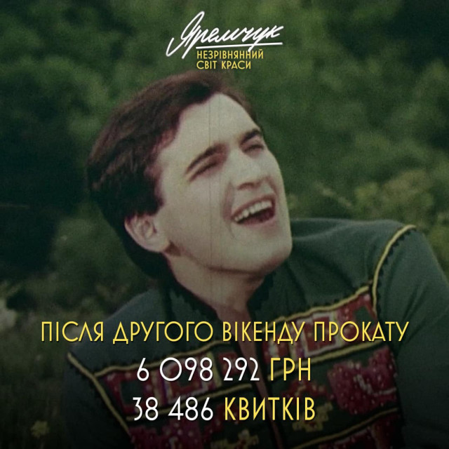 «Прийшов час поділитися результатами другого прокатного вікенду стрічки «Яремчук: Незрівнянний світ краси». Касові збори склали 6 098 292 грн, а кількість проданих квитків становить 38 486!» – ідеться у дописі.