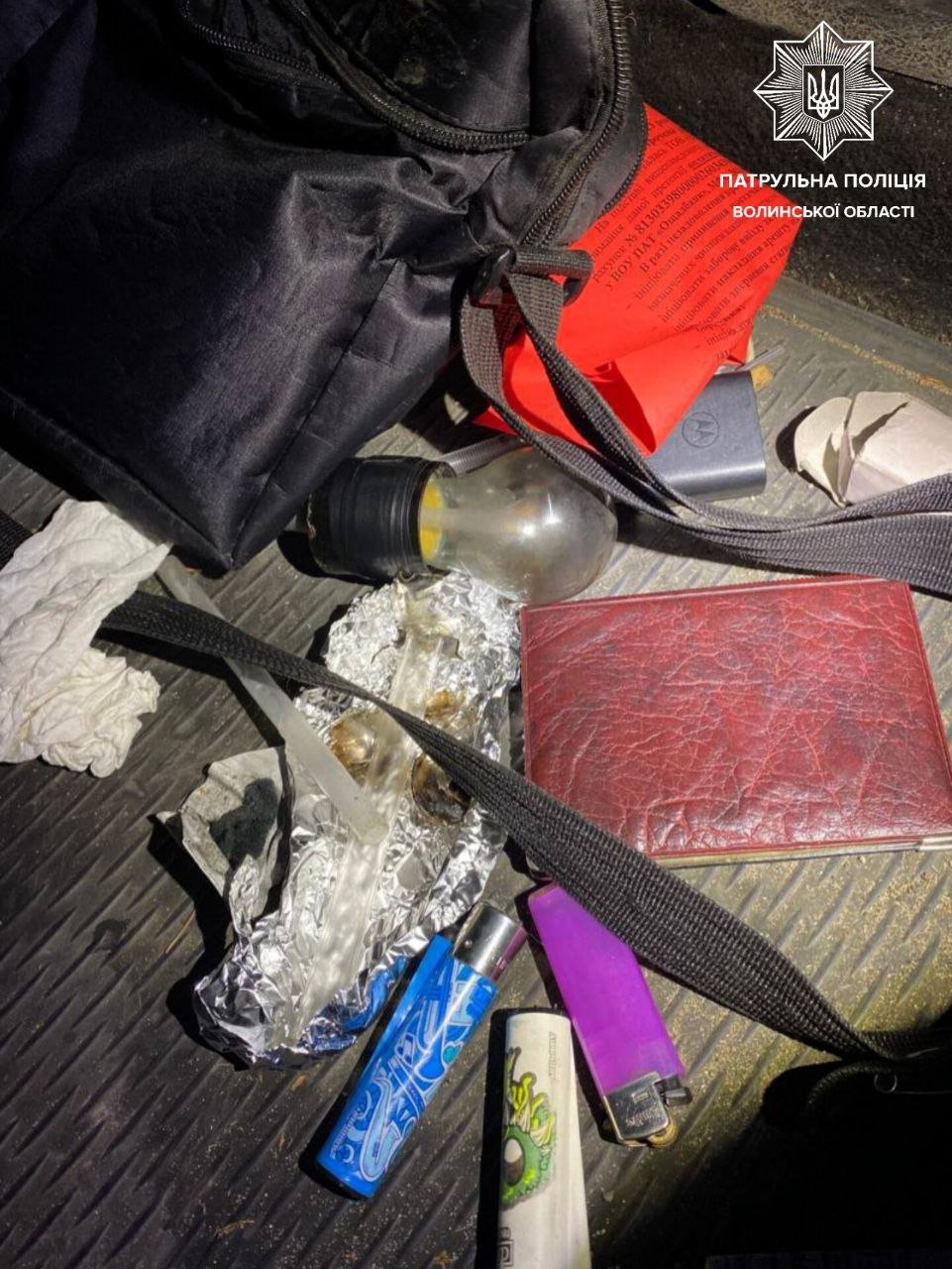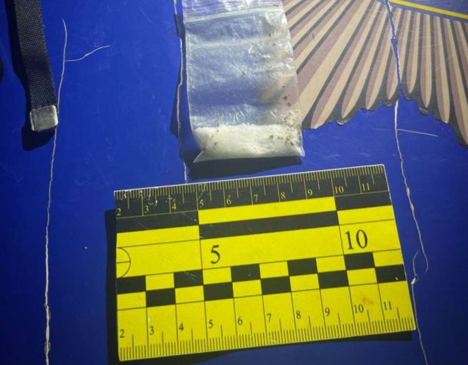У керманича патрульні виявили ознаки наркотичного сп’яніння, тож вирішили провести поверхневу перевірку. Під час огляду вони виявили у пасажира поліетиленовий пакетик, в якому містилася біла порошкоподібна речовина, а також два саморобні пристрої для вживання наркотиків.