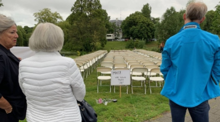 Родичі загиблих у катастрофі MH17 засудили позицію Росії, яка відмовляється визнавати свою причетність до трагедії. будівлею посольства РФ у Гаазі рідні загиблих символічно встановили 298 білих стільців, які символізують 298 жертв MH17.