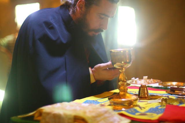«Коли сформували Свято-Миколаївський Жидичинський монастир, мене рукопоклали на диякона на Божій Горі. І чаша з вином, яку потрібно спожити під час таїнства, була дуже велика. Мені здалося, що вона була трилітровою. Коли читали молитву, я краєм вуха почув, як хтось сказав: «Ну, подивимось, яким він буде, коли спожиє цю чашу». Мене це злякало, бо я протягом тривалого часу не вживав спиртного. З одного боку, знав, що це тіло і кров Христа, але до служби не можна було нічого їсти, тож я був голодним. Здавалося, що шлунок ніби прилипнув до хребта. І я почав молитися: «Боже, врятуй мене, маловірного. Нехай це буде твоє тіло і кров, а не вино і хліб». Я сильно молився. До мене підійшов диякон і сказав, щоб я не хвилювався, що він допоможе мені спожити чашу. Але я випив її сам. А всі мені прямо в очі зазирають, мовляв, коли ж він захитається чи впаде? Але все було нормально. І це для мене було чудом Божим. Бо реально в історії були такі моменти, коли диякон споживав чашу і одразу валився з ніг. Так я став «сірим» священником, не монахом, а дияконом Олегом», – провадить духівник.