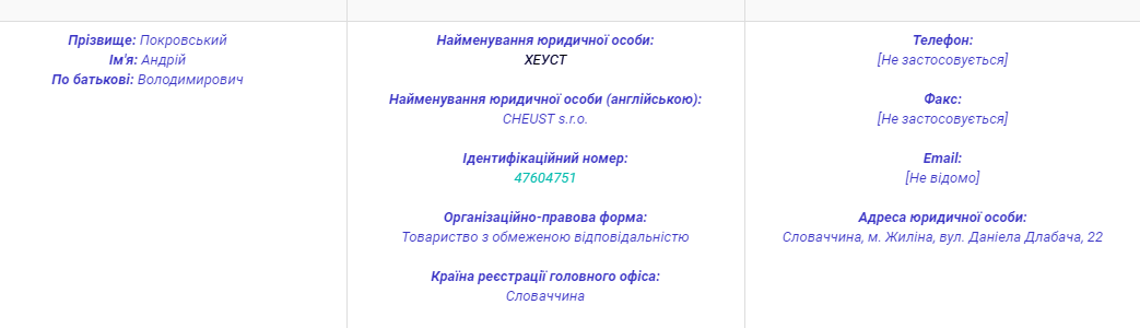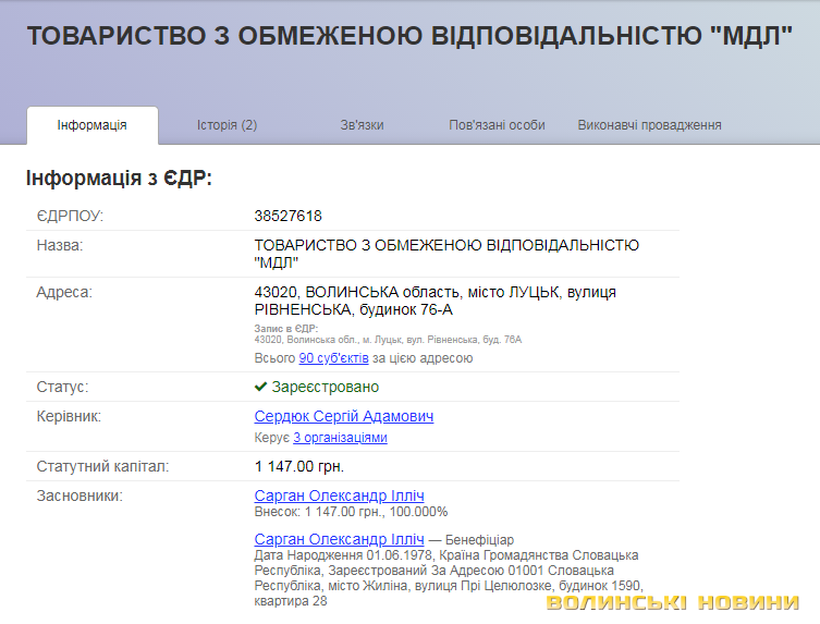 Власником фірми «МДЛ» є Сарган Олександр Ілліч, чия адреса, вказана у реєстрі – Словаччина, місто Жиліна. Більше в українських даних зв’язку Андрія Покровського та цього підприємства немає.