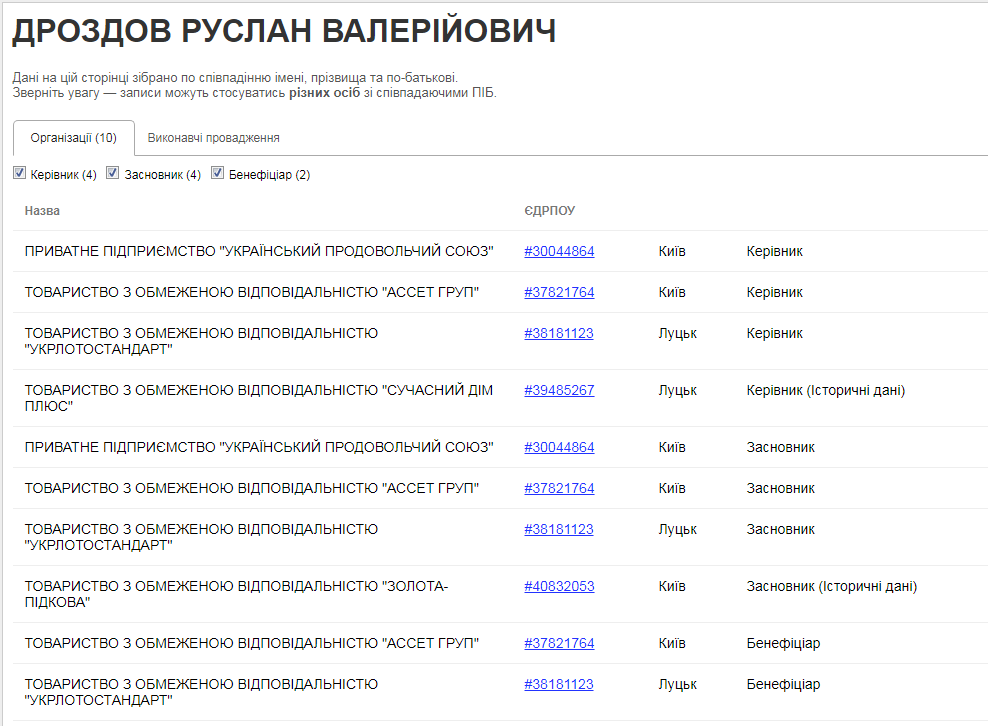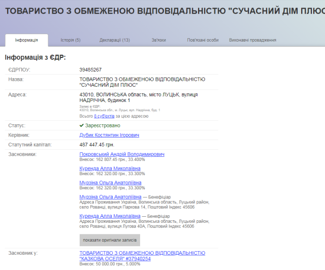 До грудня 2016 року ТзОВ «Сучасний дім плюс» керував Руслан Дроздов. Він же – керівник і власник ТзОВ «Ассет Груп», власником якого до листопада 2018 року був Андрій Покровський.