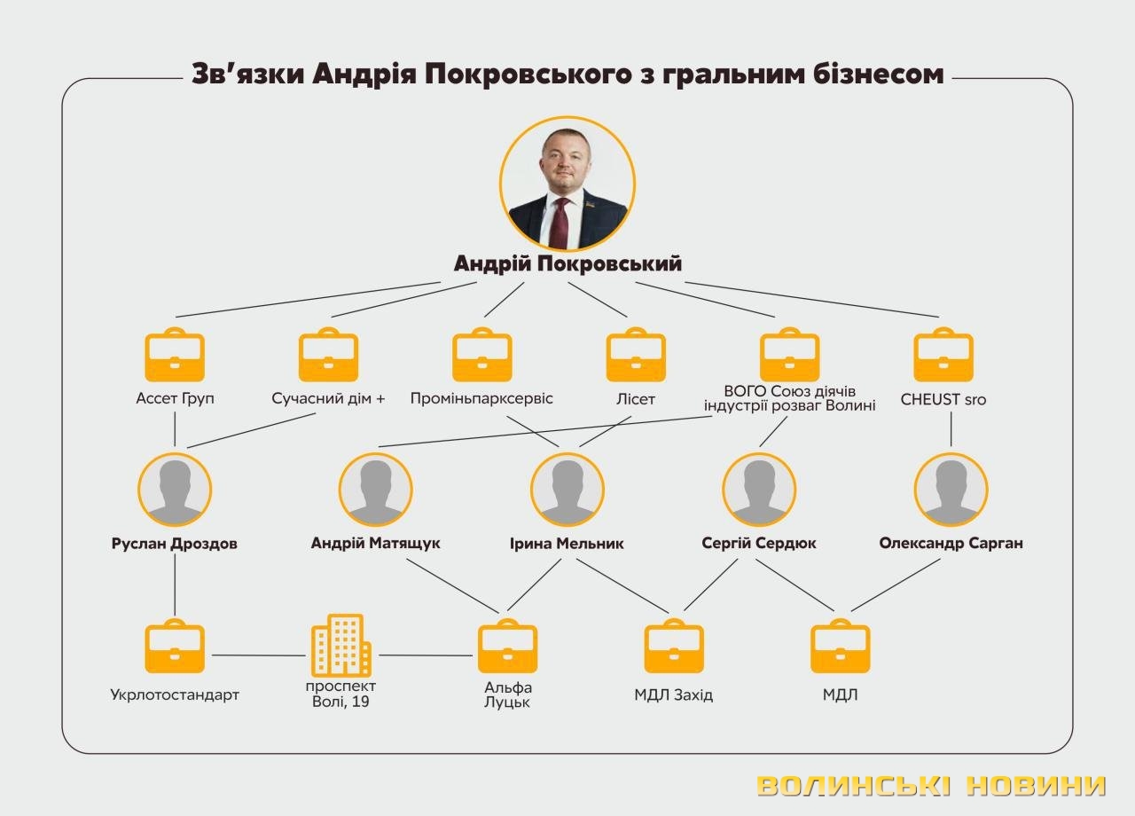 Нині ж депутат декларує, що займається юриспруденцією, консалтингом, будівництвом. Але, як виявляється, Андрій Покровський досі тісно пов’язаний з ігровим бізнесом, який мов павутиною, обплутав майже кожне місто України, у тому числі і його рідний Луцьк.