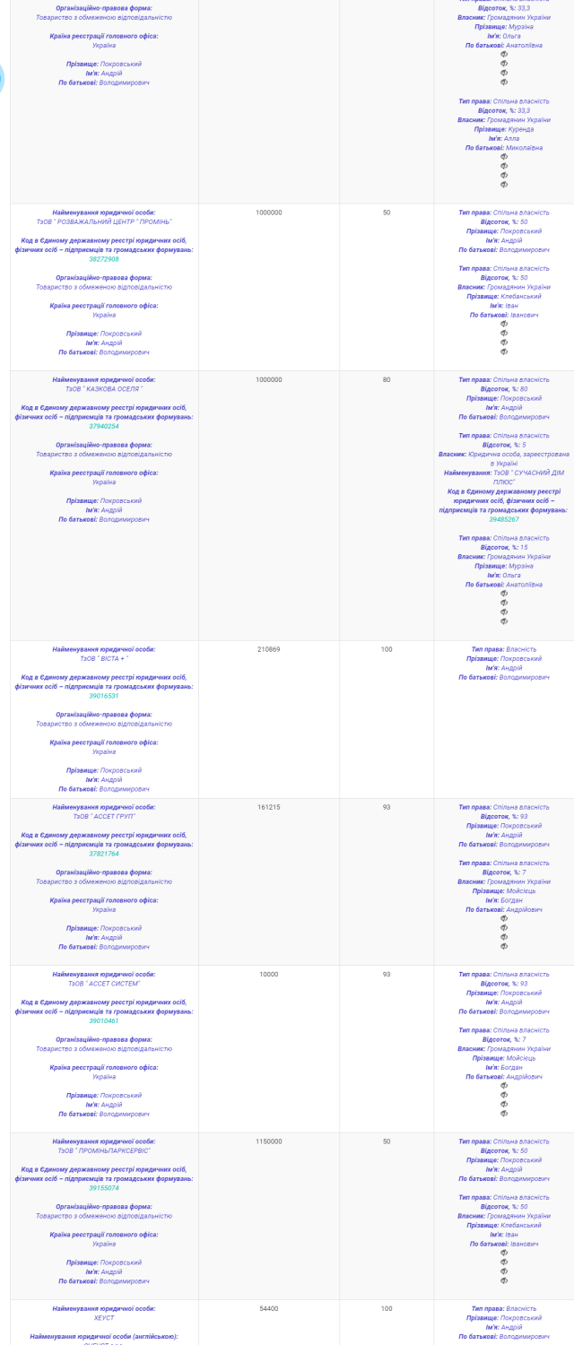 Відкидаючи емоції і аналізуючи лише відкриті дані реєстрів, можна схематично намалювати «павутину» зв’язків Андрія Покровського з індустрією грального бізнесу, з якою він так і не розірвав зв’язків.Цей масив даних – лише вершина айсберга, яка стала помітною завдяки відкриттю згаданої інформації для загального доступу.