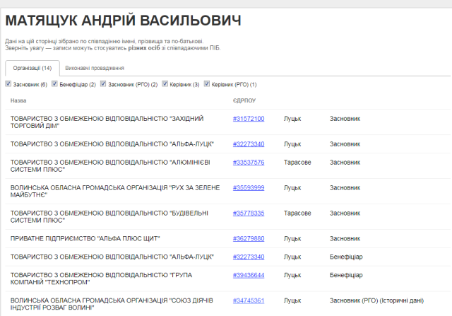 Хто ж стоїть за цими закладами? Серед осіб, пов’язаних з кришуванням грального бізнесу, часто називають нинішнього Міністра внутрішніх справ Арсена Авакова, народного депутата від БПП Олександра Третьякова. Та є серед цих прізвищ ще одне – дуже відоме в Луцьку. Йдеться про колишнього власника мережі «Альфа Казино», а нині депутата Луцької міської ради від БПП Андрія Покровського.