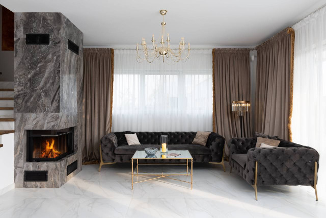 2. Вітальні та спальні: застосовується для підлог, створюючи елегантний і міцний настил. Також його можна використовувати для оздоблення стін, надаючи простору сучасний і стильний вигляд.Фасади будівель і зовнішнє облицювання