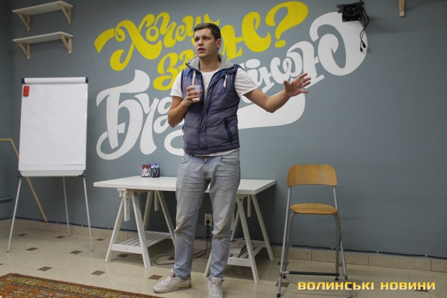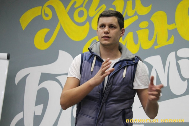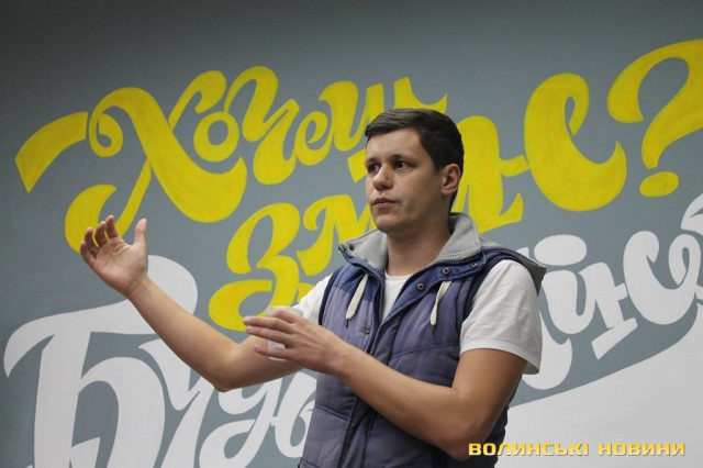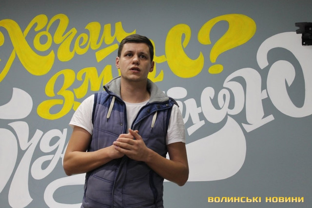 Про це актор розповів 18 жовтня в рамках воркшопу на тему «Public speaking», який відбувся у приміщенні Молодіжного центру Волині.