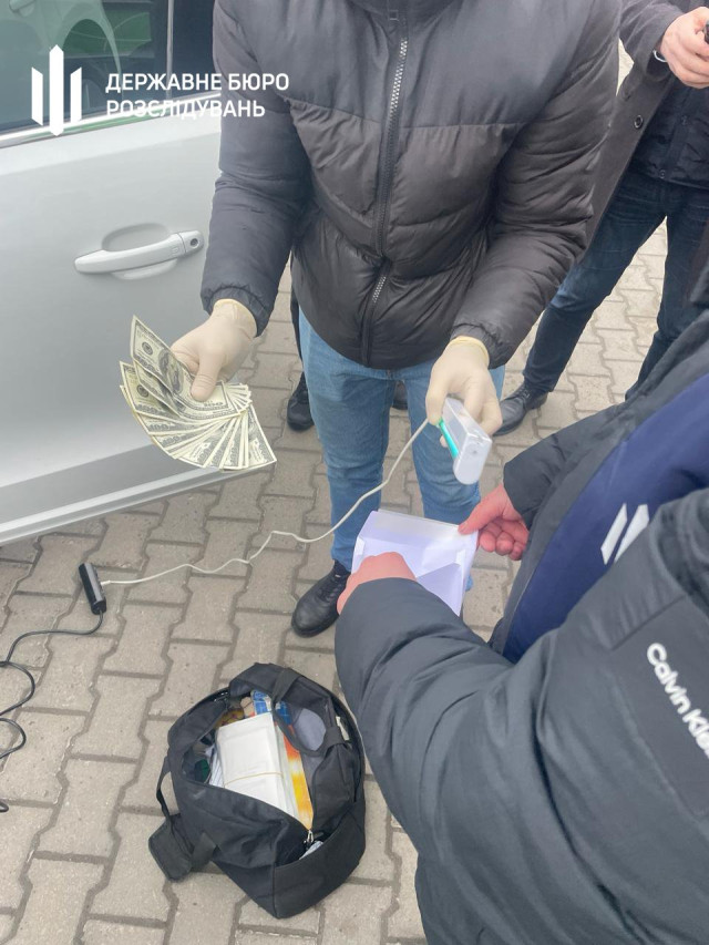 Під час передачі чергового траншу у сумі 1200 доларів його затримали працівники ДБР спільно з Нацполіцією та СБУ.