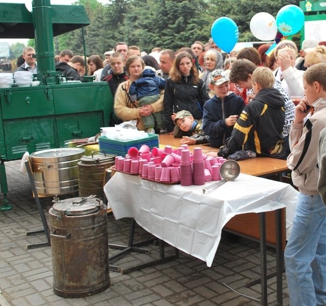 Частувати наїдками солдатської кухні з нагоди святкування 65-ї річниці Дня Перемоги повинні були близько опівдня. Проте, через те, що керівництво області затрималося на молебні на Меморіалі пам’яті, пригощання запізнилося на годину.