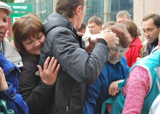 Нарешті, лучани «проривають блокаду» - їм теж дають поласувати гречаною кашею.