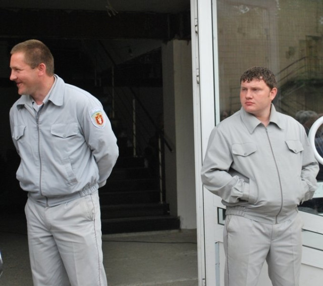 Щоб ніхто зайвий не увійшов до приміщення, де їстимуть ветерани – біля входу стоять 14 бійців муніципальної міліції.