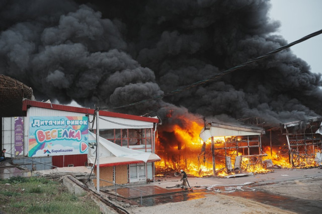 За словами міського голови, внаслідок одного з ударів виникла пожежа на одному з найбільших ринків міста в Київському районі.