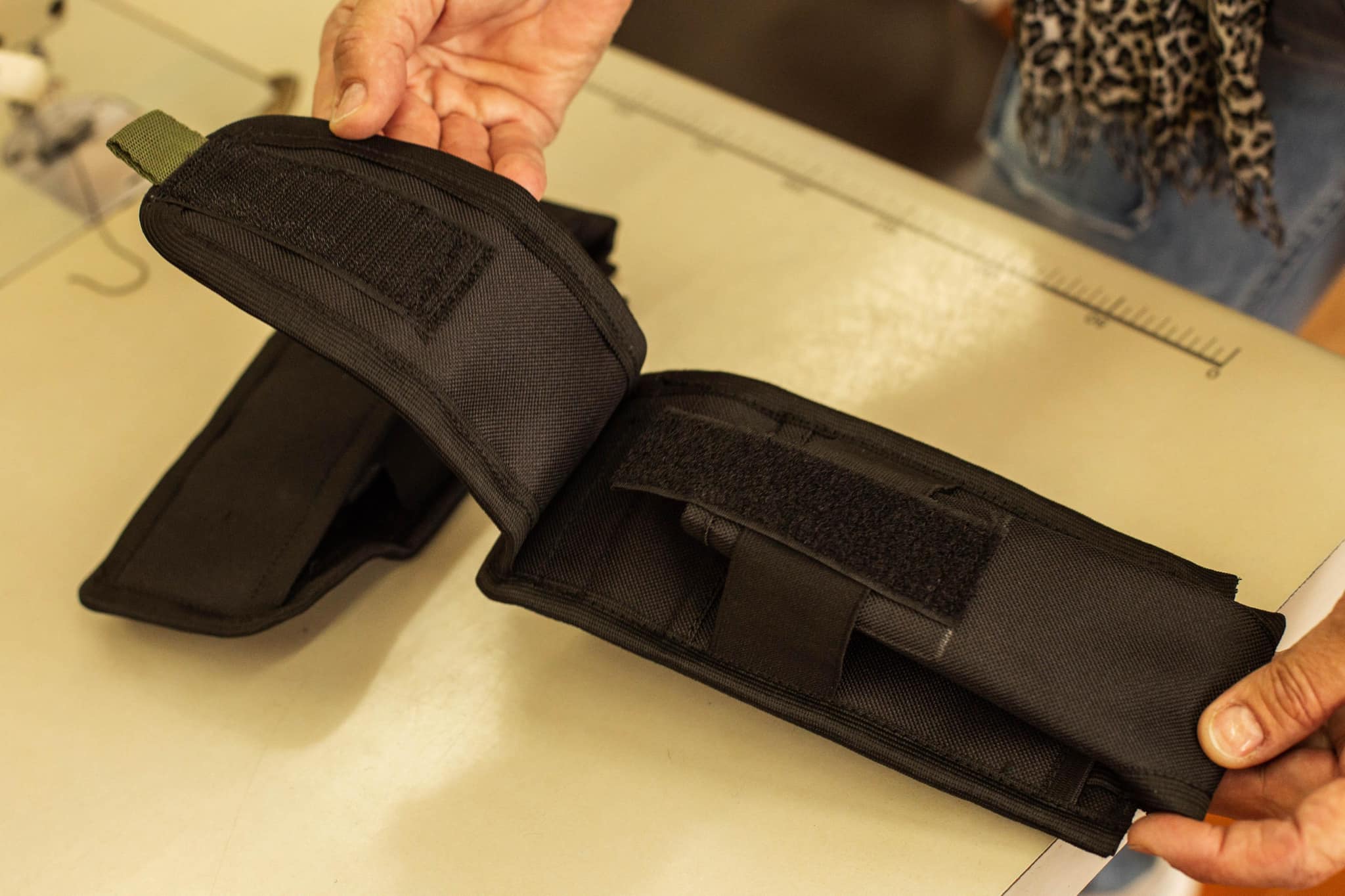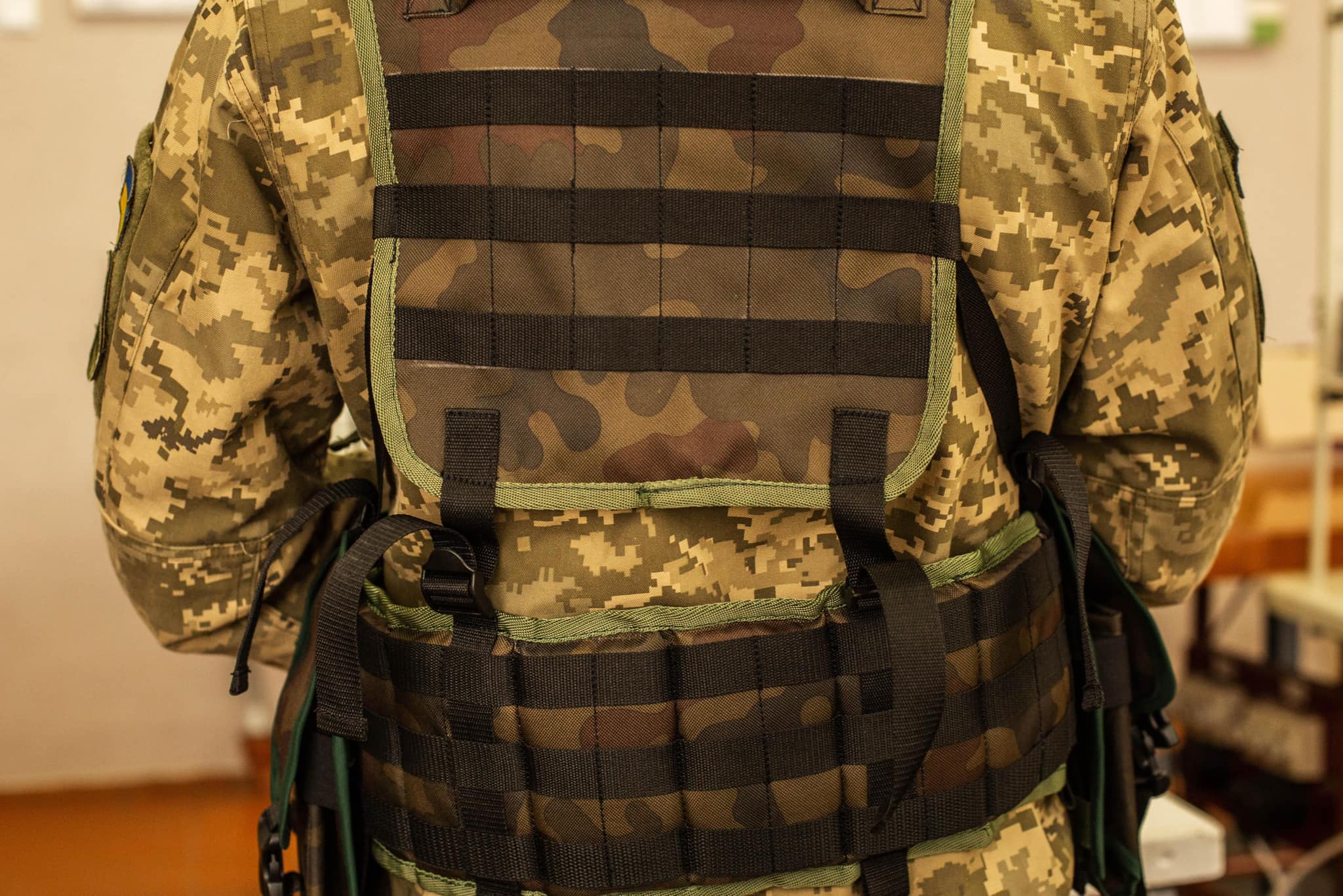 Дружину та двох дітей відправив за кордон, а сам налагоджує виробництво. Місцева влада підшукала приміщення – навчально-виробничий комбінат (поки учні вчаться дистанційно). Тут уже є обладнання, зокрема швейні машинки, а працівники – вимушені переселенці, які тепер разом працюють на перемогу.