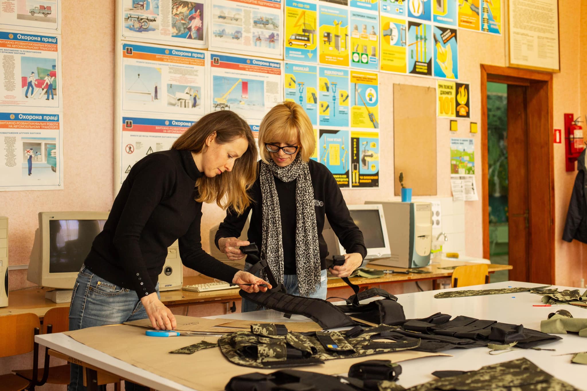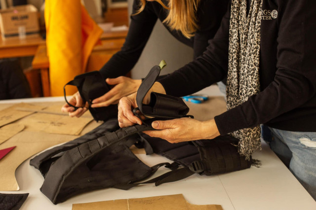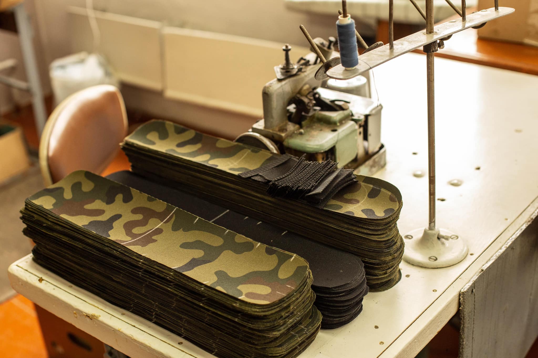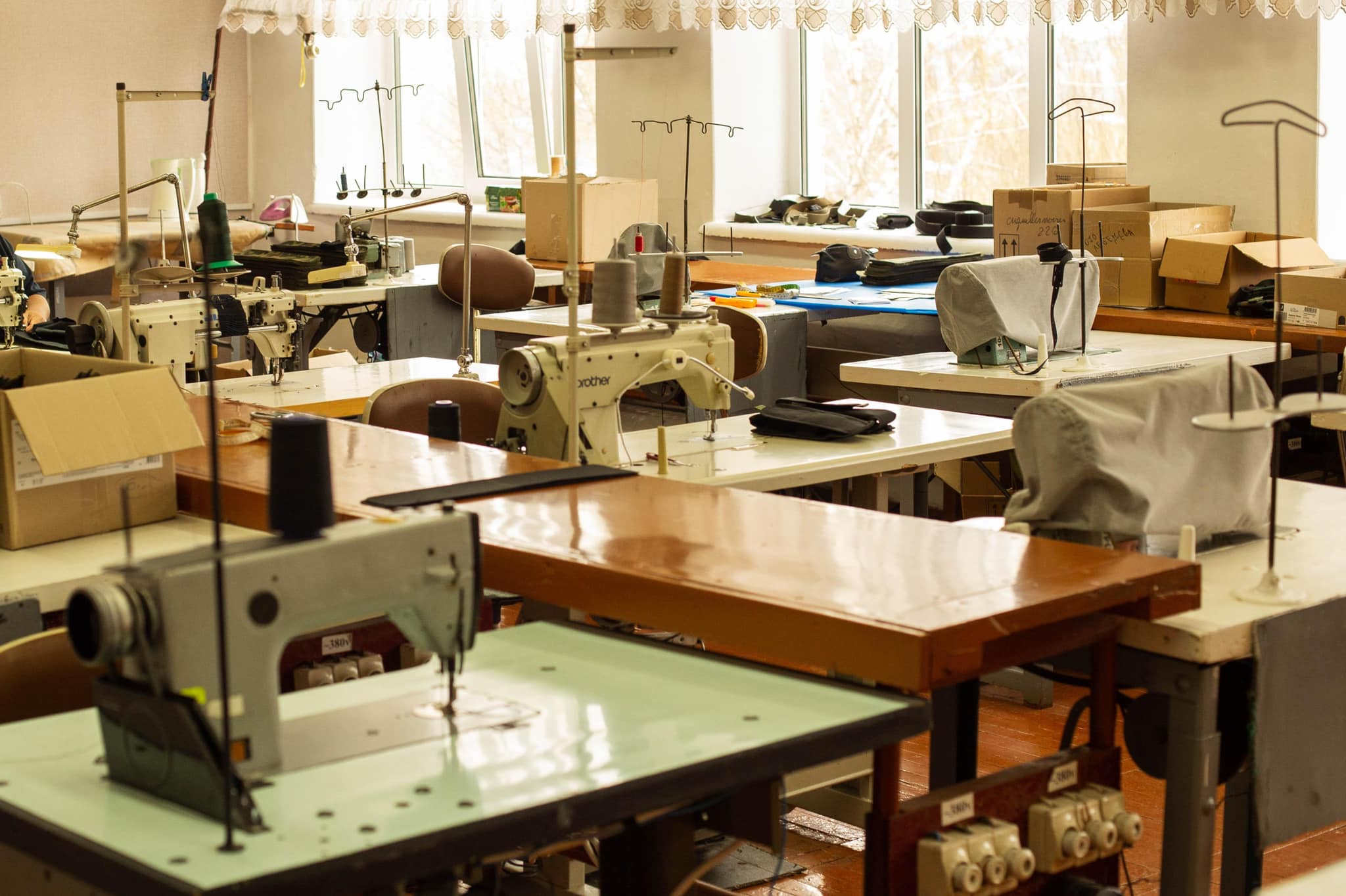 За місяць завдяки підтримці держави виробництво вдалося запустити, але не на повну, адже бракує деяких тканин і окремого обладнання. Працюють у приміщенні навчально-виробничого комбінату. Поки учні навчаються дистанційно, тут шиють військову амуніцію на фронт.