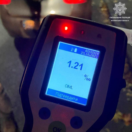 Патрульні зупинити автомобіль. За кермом перебував 26-річний чоловік, у якого виявили ознаки алкогольного сп’яніння. Він пройшов огляд на визначення стану алкогольного сп’яніння на місці зупинки транспортного засобу. Результат – 1,21 проміле.