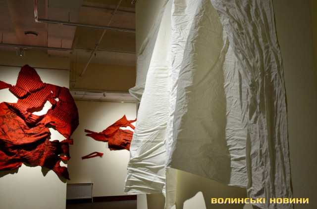 У Луцьку експонують інсталяції, які створені з тканин, виготовлених понад 20 років тому на Херсонському бавовняному комбінаті. Колись це було одне з найбільших підприємств такого типу в Європі.