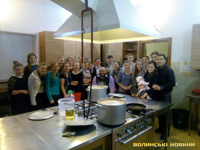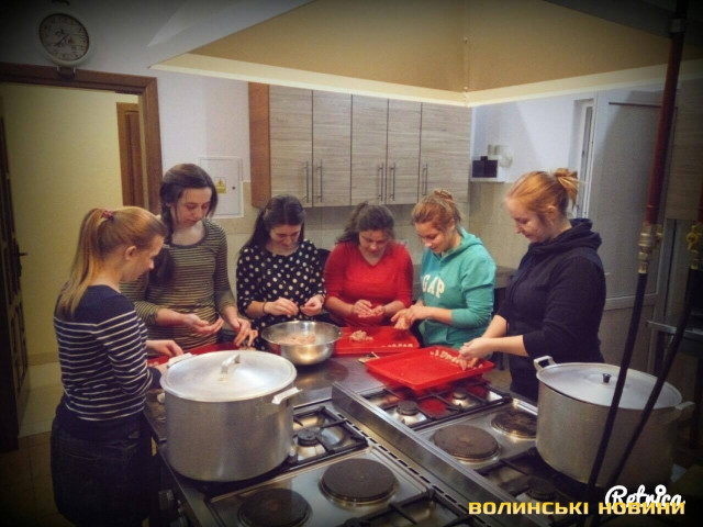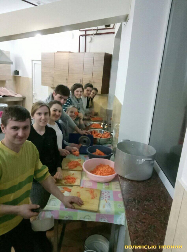 Хлопці й дівчата з «Ковчега» готують їжу для ковельських безхатченків