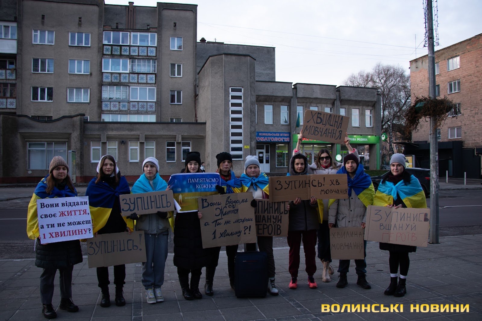 Молодіжна рада міста Ковеля розпочала акцію, щоб закликати людей не ігнорувати хвилину мовчання о 9 годині ранку. Уже понад два тижні члени організації та волонтери виходять у центр міста з плакатами для привернення уваги жителів.