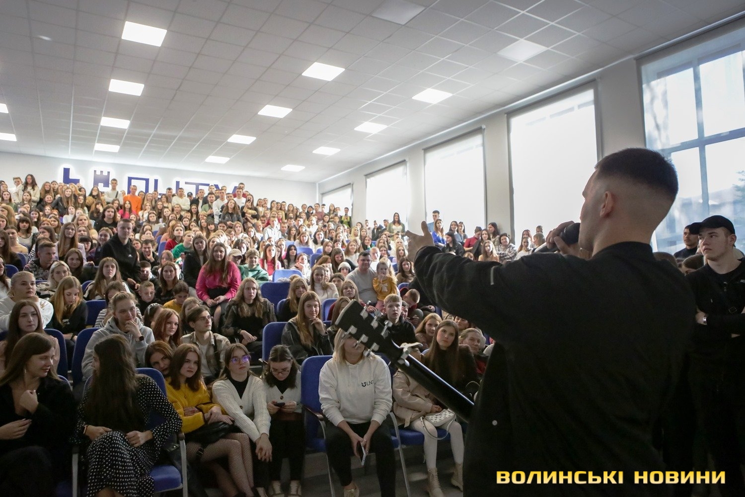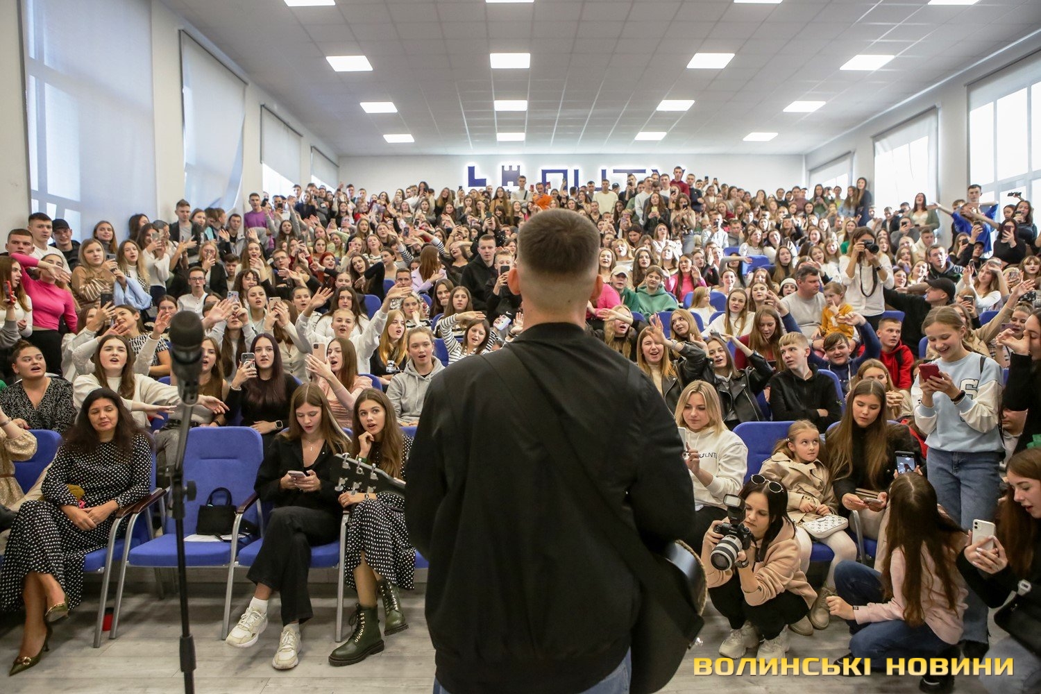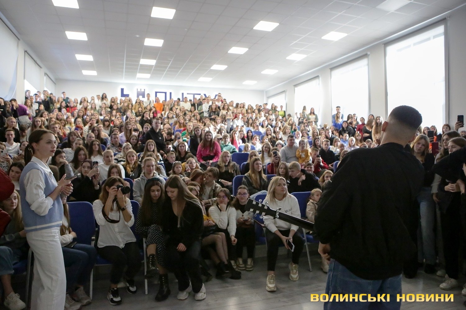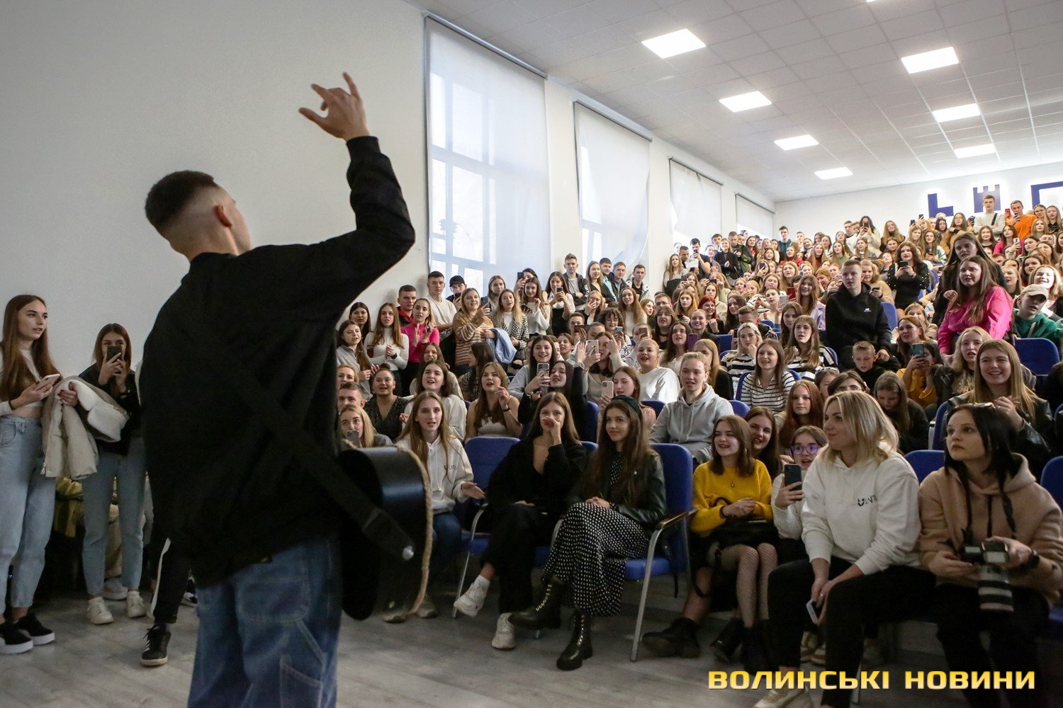 «Ходив з гітарою по Луцьку, а мені давали 5 гривень». YAKTAK розповів луцьким студентам про перший кліп, псевдонім та Євробачення. Фото