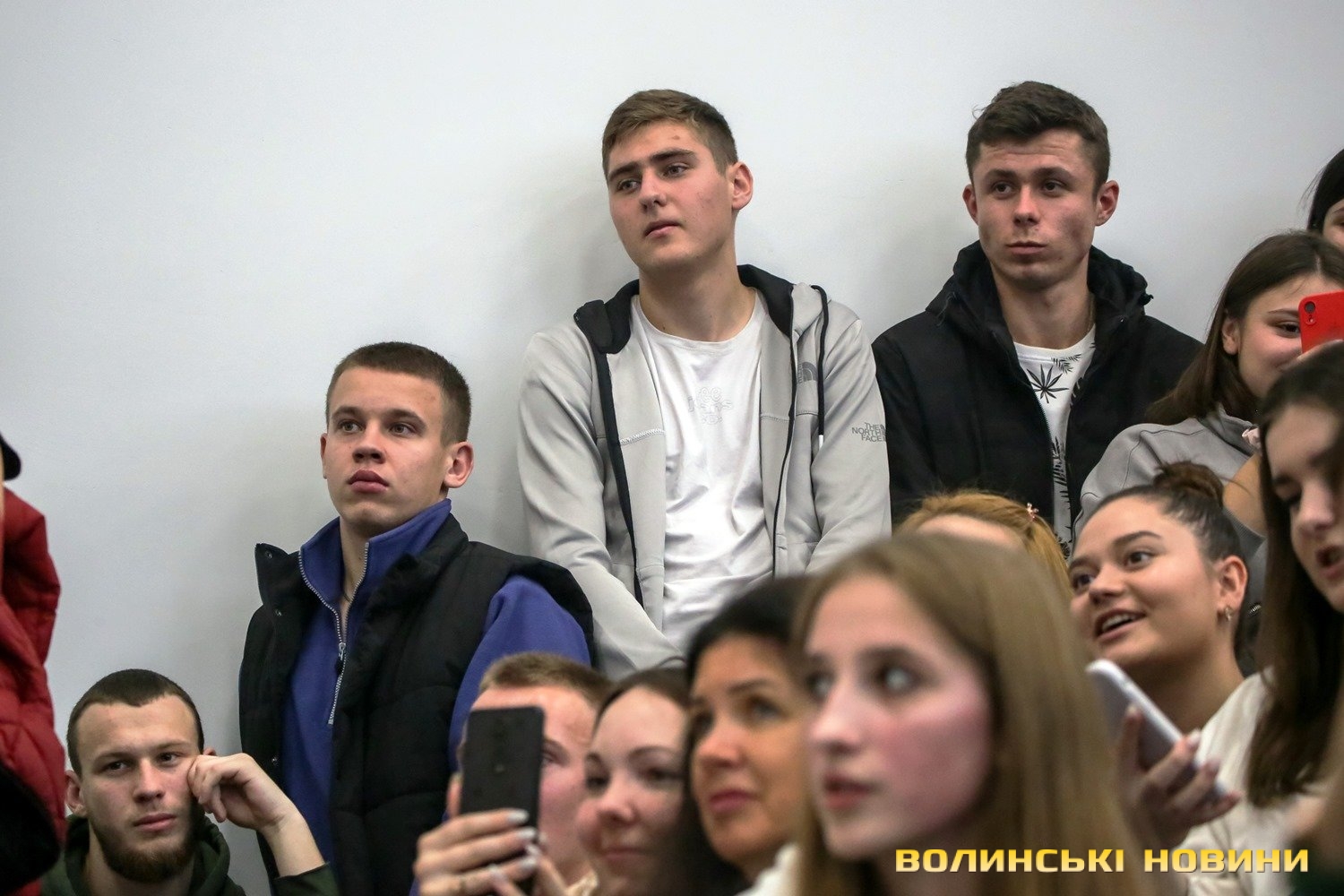 «Я думав, що на зустріч прийде кілька людей, ми посидимо, поговоримо, а вас так багато. Мене звати Ярик. Думаю, більше відомий вам, як YAKTAK. У нас сьогодні в Луцьку два концерти. Зараз у нас не концерт, а просто зустріч. Я заспіваю вам кілька пісень під гітару, просто по-душевному. Можливо, у вас будуть якісь запитання», – сказав співак з Волині.Кліпи на треки YAKTAK збирають мільйони переглядів на YouTube. Нині він один з найвідоміших та найвпізнаваніших співаків в Україні. Чи не у кожному місті, де виступає волинянин, – солдаут, а у деяких містах YAKTAK має по два концерти. Для луцьких студентів він заспівав кілька хітів, зокрема трек «Уночі».«Я зі Старої Вижівки. Все життя я був тим тіпом, який співав на сцені, на всяких концертах, шкільних святах. Мене ніхто ніколи не заставляв. Я сам цього хотів. Потім були різні конкурси, а ще потім – «Голос. Діти». Потім зрозумів, що треба співати свої пісні. Те, що бачив у житті, просто передавав у музику. І сьогодні стою тут перед вами. Рік тому на концерті у Львові ми зібрали аж 100 людей. Це втричі менше, ніж сьогодні тут. Я засмутився. Весь цей час я робив пісні. Ми знову зробили концерт і зібрали дві тисячі людей. Головне – не слухати, що вам говорять люди, які у вас не вірять», – поділився Ярослав.Нині YAKTAK подав заявку на національний відбір Євробачення, для якого він вже готує пісню. Співак зауважив, що дуже сподівається на підтримку волинян, зокрема й студентів ЛНТУ. Їх, до слова, дійсно багато зібралося в одній з аудиторій політеху. Вони запитували співака про сенс життя, його гітари, кумирів, мотивацію, популярність, вищу освіту, кліпи та псевдонім.