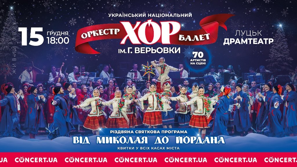 Світ захоплюється їхнім мистецтвом, аплодуючи стоячи! Легендарний хор імені Григорія Верьовки, відомий на найвищих світових сценах, презентує святкову програму «Від Миколая до Йордана» у Луцьку.