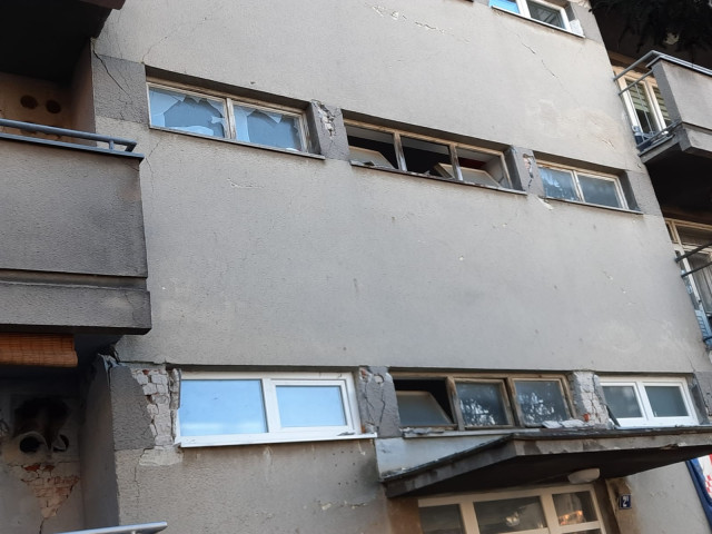 У районі міст Петриня та Сісак в будинках потріскані стіни, пошкоджені фасади, облетіла штукатурка.