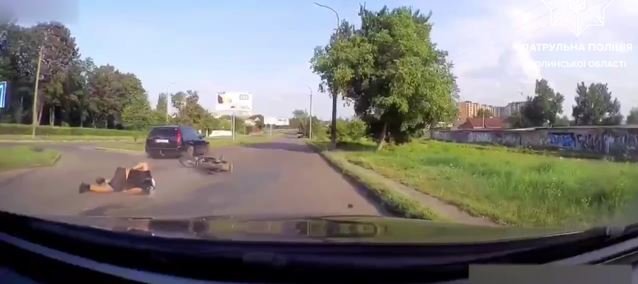 Хотів протиснутись між двома авто: у Луцьку в ДТП постраждав п’яний мотоцикліст. Відео